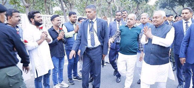 پٹنہ: وزیر اعلیٰ نتیش کمار نے آج نئی حکومت کی تشکیل کے بعد نو مقرر وزراء، نو منتخب اراکین اسمبلی، اراکین پارلیمنٹ، اراکین قانون ساز کونسل، سابق اراکین پارلیمنٹ، سابق اراکین اسمبلی، سابق اراکین قانون ساز کونسل، دیگر نمائندوں، معززین اور پارٹی کارکنوں سے ملاقات کی۔1 انے مارگ پر واقع نیک سنواد میں بڑی تعداد میں لوگوں نے وزیر اعلیٰ سے ملاقات کر کے انہیں نئی حکومت کی تشکیل پر مبارکباد اور نیک خواہشات پیش کیں۔ملاقات کے دوران وزیر اعلیٰ نے باری باری تمام لوگوں سے مل کر ان کا خیرمقدم قبول کیا اور شکریہ ادا کیا۔اس موقع پر جے ڈی یو کے ایگزیکٹو قومی صدر و رکن پارلیمنٹ سنجے کمار جھا، مرکزی وزیر راجیو رنجن سنگھ عرف للن سنگھ، وزیر وجے کمار چودھری، جے ڈی یو کے ریاستی صدر امیش سنگھ کشواہا، رکن قانون ساز کونسل سنجے کمار سنگھ عرف گاندھی جی سمیت بڑی تعداد میں جے ڈی یو کے رہنما اور کارکنان موجود تھے۔