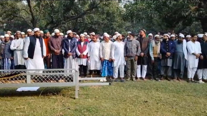 بھاگلپور (راست): روزنامہ راشٹریہ سہارا اردو کے صحافی آفاق اسد آزاد کی والدہ بدر النساء سلیم پور کے آبائی قبرستان میں نم آنکھوں سے سپرد خاک ہوئیں۔ان کی جنازے میں بڑی تعداد میں تمام مکاتب فکر کے لوگوں نے شرکت کی۔صحافی آفاق اسد آزاد کی والدہ گزشتہ روز رہائش گاہ صدرالدین چک بھاگلپور میں واقع انتقال کر گئیں تھیں۔جسے اپنے گاؤں سلیم پور گاؤں لایا گیا۔اور بعد نماز ظہر 2 بجے جنازے کی نماز مفتی محمد أنصار قاسمی،مدرسہ جمیعت قاسم دارلعلوم الاسلامیہ مدھوبنی سپول نے پڑھائی۔اور اس کے بعد تدفین عمال میں آئ۔اس موقع پر شاہجہاں شاد ارریہ ،قاری مشتاق سپول،صحافی نیاز احمد قاسمی پورنیہ،محمد مبین سریا ہاٹ دمکا،انظار چودھری،مولا عین الحق ،نور اللہ دریا پور،محمد شمشاد،محمد اسحاق ہرنا،حضرت عمر علی مرشد آباد ،محمد نثار چٹیا بانکا،پروفیسر ڈاکٹر فضا احمد سائنسٹیٹ سبور ایگریکلچرل یونیورسٹی،محمد سمن ایگریکلچر افسر پٹنہ،انجینئر شان الرحمن،شیخ عبداللہ،ماسٹر شالو،ماسٹر اختر،خدائ خدمات گار محمد شہباز،پرویز جمال ضلع صدر کانگریس بھاگلپور ،سکندر جمال،محمد صدیق عرف ببلو سینئر نائب صدر راشٹریہ جنتا دل،تاجر محمد انور عرف بہرم،محمد عمران جے ڈی یو لیڈر،سید اسد اقبال رومی،سینئر صحافی دیپک نورنگی،صحافی منہاج عالم،شیخ فیضل ،صحافی محمد احسان،شیخ اعجاز ،پروفیسر التمش،محمد شاکر ،جیشان،تاجر ناصر خان،عامر خان،سمیع اللہ،ماسٹر ارشد،مفتی اسعد،صحافی محمد شہزادہ خان کبیر پور خادم خاص پیر دمڑیا،محمد سلیم ،محمد تحسین،محمد ابصار، ایم ٹی عثمانی بسنت رائے گڈا اس کے علاوہ مقامی اور بیرونی اضلاع و ریاست سے بڑی تعداد میں لوگوں نے شرکت کی اور اسے نم آنکھوں سے سپرد خاک کیا،اس دوران ان کے بڑے پوتے صحافی شارق آفاق،پوتیاں عفت نسرین، رفعت نسرین اور بہو نسرین آفاق ان کی خدمات میں رات دن پیش پیش رہیں۔اس موقع پر تمام شرکاء نے مرحومہ کے لئے ایصال ثواب کی دعا فرمائیں۔ سینئرصحافی آفاق اسد آزاد کی والدہ کی وفات کی خبر جیسے لوگوں موصول ہوئ ان کی رہائش گاہ پر مرحومہ کی آخری دیدار کے لئے مرد و خواتین بڑی تعداد میں جمع ہوگئے۔کیونکہ مرحومہ اس علاقے میں سب سے عمر دراز تھیں۔ ن کی اخلاقیات سے سبھی مانوس تھے۔آفاق اسد آزاد کے مطابق ان کی والدہ کی عمر ایک سو سال گیارہ ماہ سات دن تھی۔