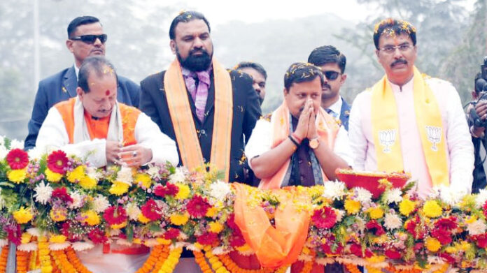 پٹنہ، 23 دسمبر (یواین آئی) :بھارتیہ جنتا پارٹی (بی جے پی) کے قومی ایگزیکٹیو صدر نتن نوین کی منگل کو پٹنہ آمد پر پارٹی کے رہنماؤں اور کارکنوں نے ان کا شاندار استقبال کیا۔ اسٹیٹ ہینگر پر بی جے پی کے سینئر رہنماؤں نے ان کا خیر مقدم کیا، جس کے بعد پٹنہ ایئرپورٹ سے بیلی روڈ کے راستے ملر ہائی اسکول گراؤنڈ تک ایک عظیم الشان روڈ شو کا انعقاد کیا گیا۔روڈ شو میں ریاستی صدر سنجے سراؤگی، مرکزی وزیر گری راج سنگھ، رکن پارلیمنٹ ڈاکٹر سنجے جیسوال، وزیر ڈاکٹر دلیپ جیسوال، دونوں نائب وزرائے اعلیٰ سمراٹ چودھری اور وجے کمار سنہا سمیت کئی سینئر رہنما موجود رہے۔ اس دوران نتن نوین رتھ پر سوار ہو کر اپنے حامیوں کا خیر مقدم کرتے نظر آئے۔ انہوں نے راج ونشی نگر واقع ہنومان مندر میں پوجا ارچنا بھی کی، جہاں بی جے پی کارکنان زبردست جوش و خروش کے ساتھ ”جے شری رام“ کے نعرے لگاتے دکھائی دیے۔حامیوں نے جے سی بی مشین کے ذریعے پھولوں کی بارش کر کے ماحول کو جشن میں تبدیل کر دیا۔ سڑک پر ہاتھی اور گھوڑوں پر سوار بی جے پی حامی دوڑ لگاتے رہے۔ کئی مقامات پر سڑک کے کنارے بنے اسٹیج پر بچیوں نے روایتی رقص کے ذریعے پارٹی کے نئے قومی ایگزیکٹیوصدر کا استقبال کیا۔ ایئرپورٹ سے لے کر ملر ہائی اسکول گراؤنڈ تک پورا علاقہ بینروں اور پوسٹروں سے سجا ہوا اور بی جے پی کے رنگ میں رنگا نظر آیا۔