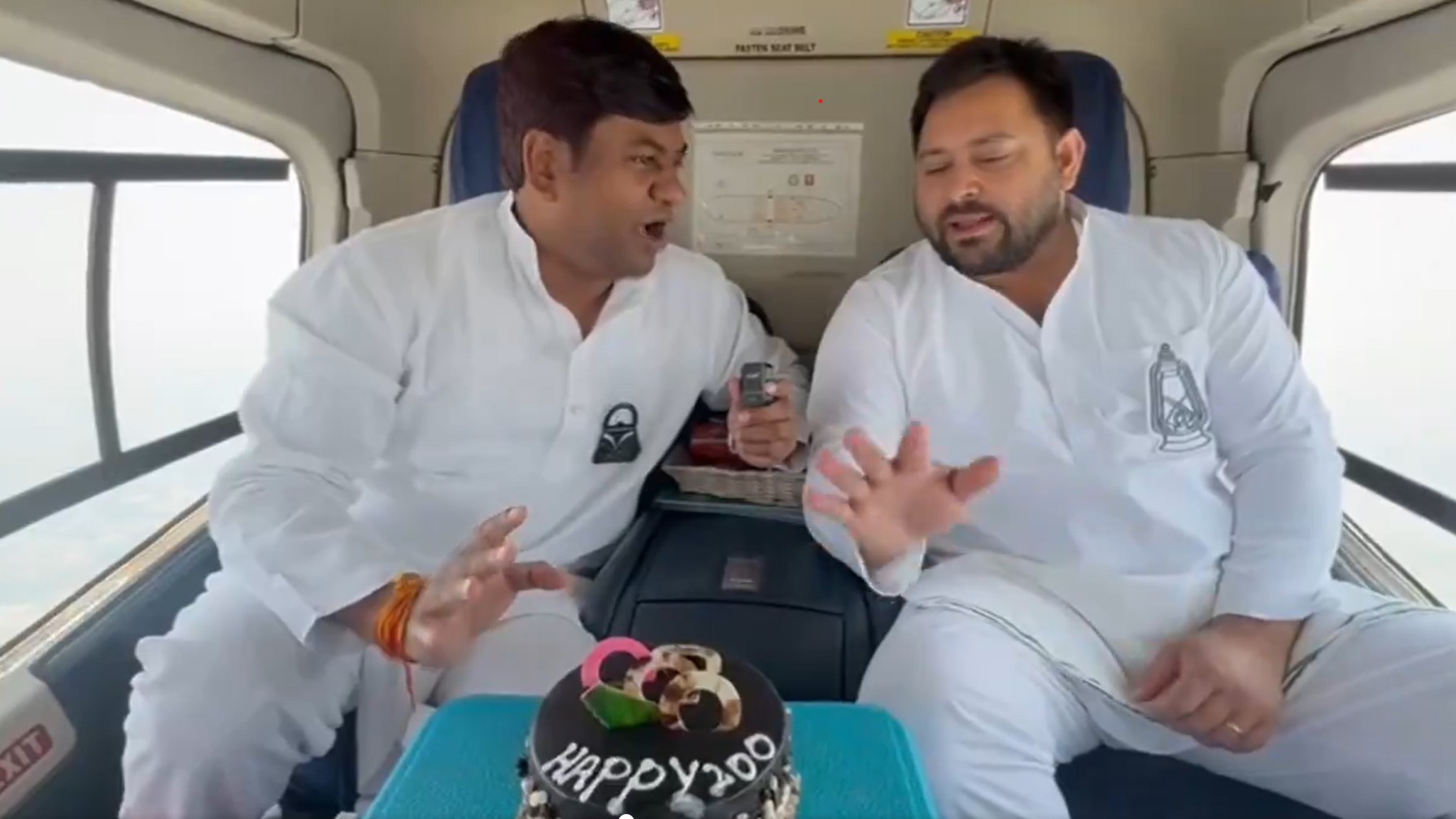 لوک سبھا کے انتخابی مہم میں مصروف بہار کے سابق نائب وزیر اعلی تیجسوی یادو اور وی آئی پی کے سربراہ مکیش سہنی نے مچھلی اور سنترہ کے بعد اب ہیلی کاپٹر میں کیک کاٹنے اور کھانے کا ویڈیو شیئر کیا ہے۔ دراصل آج تیجسوی یادو اور مکیش سہنی اپنی 200ویں ریلی کرنے جا رہے ہیں، جس کے لیے سہنی نے تیجسوی کو سرپرائز دیتے ہوئے انہیں کیک پیش کیا۔ جسے ان دونوں لیڈروں نے کاٹا اور ایک دوسرے کو کھلایا۔