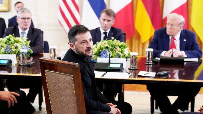 یوکرین کے صدر زیلنسکی نے امریکی صدر ٹرمپ کی جانب سے روس کے زیرقبضہ علاقوں سے دستبرداری کی تجویز مسترد کردی۔غیر ملکی خبر ساں ادارے روئٹرز کی رپورٹ کے مطابق امریکی صدر ڈونلڈ ٹرمپ نے یوکرینی صدر زیلنسکی کو روس کے زیرقبضہ علاقوں سے دستبرداری کا مشورہ دیا جس پر فوری ردعمل ظاہر کرتے ہوئے صدر زیلنسکی نے صدر ٹرمپ کی تجویز کو مسترد کردیا۔وائٹ ہاؤس میں روس یوکرین جنگ کے خاتمہ کے حوالے سے ہونے والے اہم اجلاس میں یورپی رہنماؤں نے فوری جنگ بندی اور سہ فریقی مذاکرات کے آغاز پر زور دیا۔امریکی صدر ٹرمپ نے اجلاس کے شرکاء کو بتایا کہ روسی صدر پوتن نے یوکرین کی سیکیورٹی ضمانت منظور کرلی ہے، جس پر یوکرینی صدر زیلنسکی کا کہنا تھا کہ سیکیورٹی ضمانتوں کے معاملے میں سب کچھ چاہتا ہوں۔صدر زیلنسکی کا کہنا تھا کہ امریکہ سمیت تمام دوست ممالک کی ذمہ داری ہے کہ وہ ہمارا ساتھ دیں، صدر ٹرمپ کی سفارتی کوششوں کے حامی ہیں اور سہ ملکی مذاکرات کیلئے تیار ہیں۔یوکرینی صدر نے کہا کہ ہمیں جنگ کے خاتمے کی حمایت کرنی چاہیے، صدر ٹرمپ کے سفارتی راستے کی حمایت کرتے ہیں۔امریکی صدر نے کہا کہ اگر معاملات ٹھیک رہے تو ہم زیلنسکی اور پیوٹن کے ساتھ سہ فریقی میٹنگ کرینگے۔ یوکرین کی سیکیورٹی کے معاملے پر عالمی سطح پر بڑی مدد سامنے آئے گی۔اس موقع پر امریکی صدر ٹرمپ نے ایک صحافی کی جانب سے یوکرین میں فوج بھیجنے سے متعلق سوال پر جواب دینے سے گریز کیا۔وائٹ ہاؤس میں صدر ٹرمپ اور یوکرینی ہم منصب زیلنسکی اور یورپی رہنماؤں کا اجلاس ہوا، جس میں فرانسیسی صدر، برطانوی وزیراعظم، جرمن چانسلر، اطالوی وزیراعظم، فن لینڈ کے صدر، یورپی یونین سربراہ بھی ملاقات میں شامل تھے۔وائٹ ہاؤس میں نیٹو کے سیکریٹری جنرل مارک روٹے بھی اہم اجلاس کا حصہ تھے، گزشتہ ملاقات میں لباس پر تنقید کے باوجود زیلنسکی اس بار پھر فوجی طرز کا سوٹ پہن کر وائٹ ہاؤس آئے۔یاد رہے کہ اس سے قبل امریکی صدر ڈونلڈ ٹرمپ نے یوکرین کے صدر وولودیمیر زیلنسکی سے ملاقات میں یقین دہانی کرائی ہے کہ امریکا کسی بھی امن معاہدے میں یوکرین کی سلامتی کو یقینی بنانے کے لیے یورپ کی مدد کرے گا۔