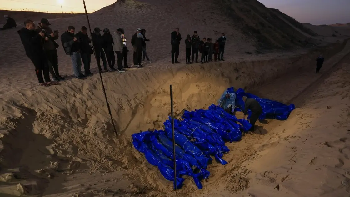 دریں اثنا ان لاشوں کو پٹی کے شمالی حصے سے اکٹھا کیا گیا اور جنوب میں رفح کے ایک قبرستان میں ایک طویل خندق میں دفن کیا گیا۔غزہ کی پٹی کے جنوب میں رفح کا ایک منظر جہاں اجتماعی تدفین ہو رہی ہے