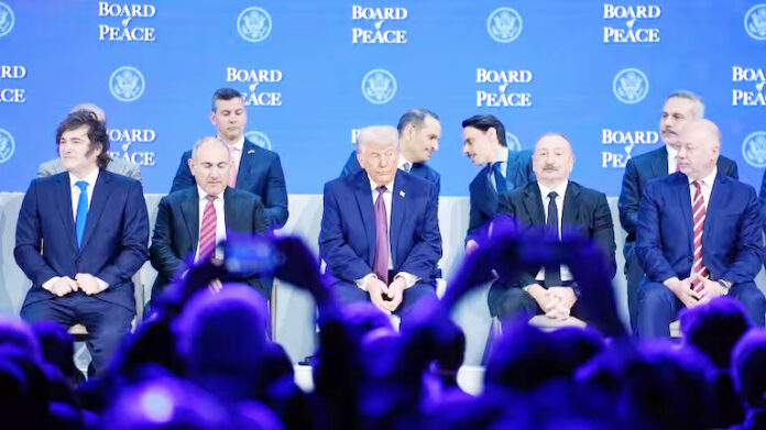 ٹرمپ نے گذشتہ ہفتے سوئٹزرلینڈ کے شہر ڈیووس میں عالمی اقتصادی فورم میں اپنے “بورڈ آف پیس” اقدام کا آغاز کیا۔اس کے بانی منشور پر دستخط کرنے کے لیے سٹیج پر ان کے ہمراہ 19 ممالک کے رہنماؤں اور حکام نے شرکت کی۔اگرچہ اس کا اصل مقصد غزہ کی تعمیرِ نو کی نگرانی کرنا ہے لیکن بورڈ کا منشور اس کے کردار کو فلسطینی علاقوں تک محدود نہیں کرتا۔