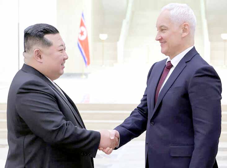 ماسکو، 30 نومبر (یواین آئی) روسی وزیر دفاع آندرے بیلوسوف نے جمعہ کے روز شمالی کوریا کے سربراہ کم جونگ اُن سے ملاقات کی۔ ملاقات میں دونوں ملکوں کے بیچ فوجی تعاون بڑھانے پر اتفاق رائے ہوا۔ یہ بات سرکاری میڈیا نے آج ہفتے کے روز بتائی۔اس موقع پر شمالی کوریا کے سربراہ نے یہ عزم کیا کہ ان کا ملک یوکرین میں روس کی جنگ کی “بھرپور حمایت” کرے گا۔شمالی کوریا کی سرکاری خبر رساں ایجنسی کے مطابق بیلوسوف کا دورہ “دونوں ملکوں کی دفاعی صلاحیتوں کو بڑھانے، دونوں ملکوں کے بیچ دوستانہ اور متبادل تعاون بڑھانے اور دونوں ملکوں کی افواج کے بیچ تعلقات کو مضبوط بنانے میں اہم کردار ادا کرے گا”۔واضح رہے کہ شمالی کوریا نے یوکرین میں روس کی فوجی کارروائی کی حمایت کی تھی۔ ماسکو اور پیانگ یانگ دونوں ہی اسے مشرق میں نیٹو اتحاد کی “غیر ذمے دارانہ” پیش قدمی اور امریکا کے زیر قیادت اقدامات کے جواب میں دفاعی رد عمل قرار دے چکے ہیں۔ ان کے مطابق نیٹو اور امریکا کے اقدامات کا مقصد روس کی بطور ایک طاقت ور ریاست حیثیت ختم کرنا ہے۔مغرب یہ سمجھتا ہے کہ شمالی کوریا کے تقریبا 10 ہزار فوجی روس کے مغربی حصے میں یوکرین کی سرحد کے نزدیک واقع علاقے کورسک بھیجے گئے۔ ماسکو اور پیانگ یانگ کی جانب سے اس کی تصدیق نہیں کی گئی۔کم جونگ کے مطابق مغربی طاقتوں کا روس پر حملوں کے لیے یوکرین کو اپنے میزائل استعمال کرنے کی اجازت دینے کا فیصلہ یہ “تنازع میں براہ راست عسکری مداخلت” ہے۔ شمالی کوریا کی خبر رساں ایجنسی کے مطابق کم کا مزید کہنا تھا کہ روس کا دشمن قوتوں کو قیمت چکانے پر مجبور کرنے کے لیے فیصلہ کن اقدام کرنا اپنے دفاع کا حق استعمال کرنا ہے، کیوں کہ یہ روس کے خلاف جنگ میں ایک دشمن وجود کے طور پر ظاہر ہوئی ہیں۔فروری 2022 میں یوکرین پر ماسکو کے حملے کے بعد سے روس اور شمالی کوریا نے اپنے فوجی تعلقات میں اضافہ کیا ہے۔ شمالی کوریا اور روس کو اقوام متحدہ کی جانب سے پابندیوں کا سامنا ہے۔ اس کی وجہ پیانگ یانگ کا جوہری ہتھیاروں کا پروگرام اور ماسکو کی یوکرین میں لڑائی ہے۔ دونوں ملکوں نے رواں سال جون میں تزویراتی شراکت داری کے ایک معاہدے پر دستخط کیے تھے۔ اس معاہدے کے مطابق کسی بھی حملے کی صورت میں متبادل عسکری مدد کی جائے گی اور مغرب کی جانب سے پابندیوں کا مقابلہ کرنے کے لیے باہمی تعاون کیا جائے گا۔