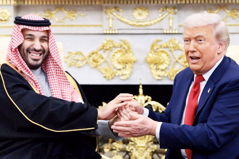 امریکی صدر ڈونلڈ ٹرمپ نے نہ صرف وائٹ ہاؤس میں نہ صرف سعودی ولئ عہد محمد بن سلمان کا شاندار استقال کیا، ان کو ایک شایان شان عشائیہ دیا، بلکہ انھیں مستقبل کا سعودی بادشاہ بھی کہا۔وائٹ ہاؤس اوول آفس میں امریکی صدر ٹرمپ اور سعودی ولی عہد محمد بن سلمان کی ملاقات ہوئی، اس موقع پر امریکی صدر نے کہا ولی عہد کی آمد پر مجھے بے حد خوشی ہے، محمد بن سلمان مستقبل کے بادشاہ ہیں۔ٹرمپ نے کہا ’’سعودی فرماں روا سے میرے بہت اچھے تعلقات ہیں، ان سے بھی میں نے کہا کہ آپ کے بیٹے بہت قابل ہیں۔‘‘ انھوں نے مزید کہا کہ سعودی عرب 600 ارب ڈالر کی سرمایہ کاری کر رہا ہے، اس سرمایہ کاری کو مزید بڑھائیں گے، سعودی عرب سے سرمایہ کاری کا مطلب وال اسٹریٹ میں پیسہ آنا ہے۔امریکی صدر نے کہا ایک سال پہلے امریکہ مردہ تھا اور آج اہم ملک بن گیا ہے، میرے بعد ایک سال میں 21 ٹریلین ڈالر کی سرمایہ کاری آئی، بائیڈن انتظامیہ نااہل تھی، 4 سال میں بھی اتنی سرمایہ کاری نہیں آئی، اس دور میں امریکی تاریخ کی بدترین مہنگائی ہوئی، بائیڈن نے پیٹرولیم اور گیس ذخائر کو بھی تباہ کر دیا تھا، جنھیں اب ہم دوبارہ بنا رہے ہیں۔سعودی عرب سے تعلقات کے اس اہم موقع پر انھوں نے ایران پر حملے کا بھی خصوصی ذکر کیا، اور کہا کہ ایران پر حملے کی تیاری 22 سال سے جاری تھی لیکن کسی نے حملہ نہیں کیا، سال میں تین بار ایران پر حملے کی تیاری کی جاتی تھی لیکن پھر اجازت نہیں ملتی تھی، ہم نے حملہ کر کے ایران کی ایٹمی صلاحیت کو ختم کر دیا ہے، ایسا پہلے کسی صدر نے نہیں کیا۔