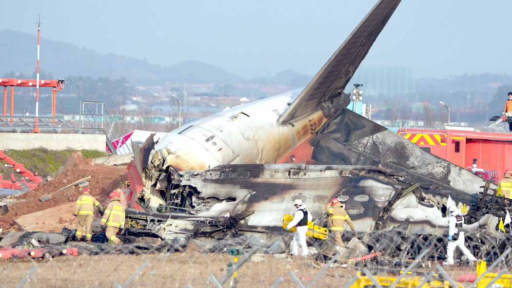سیول، 29 دسمبر (یو این آئی) جنوبی کوریا کی جنوب مغربی کاؤنٹی موان میں اتوار کو ایک ہوائی اڈہ پر رن وے سے اترنے اور دیوار سے ٹکرانے کے بعد 181 لوگوں کو لے جارہے ایک مسافر بردار طیارے کے آگ کی زد میں آنے سے اس میں سوار دو لوگوں کے علاوہ تمام افراد کی ہلاکت کا خدشہ ہے۔ایک افسر نے یہ اطلاع دی۔یونہاپ خبر رساں ایجنسی نے فائر ایجنسی کے حوالے سے بتایا کہ جنوبی کوریا کے 173 اور تھائی لینڈ کے دو لوگوں سمیت 175 مسافروں اور عملے کے چھ ارکان کے ساتھ مسافر بردار طیارہ دارالحکومت سیول سے تقریباً 288 کلومیٹر جنوب مغرب میں جنوبی جیولاصوبے کی موان کاؤنٹی میں مقامی وقت کے مطابق صبح تقریباً 09:07 پر موان بین الاقوامی ہوائی اڈے پر اترنے کی کوشش کرتے وقت حادثہ کا شکار ہوگیا۔ ایجنسی نے بتایا کہ بنکاک، تھائی لینڈ سے جیجو ایئر کا طیارہ 7سی 2216 رن وے سے پھسل گیا اور رن وے کی بیرونی دیوار سے ٹکرا گئی، جس سے آگ لگ گئی۔ خیال کیا جاتا ہے کہ حادثہ پرندے کے ٹکرانے کی وجہ سے ہوا جس کی وجہ سے لینڈنگ گیئر میں خرابی پیدا ہوگئی۔ ان کا کہنا تھا کہ حادثے میں دو افراد کے علاوہ تمام لاپتہ افراد کے ہلاک ہونے کا خدشہ ہے۔ فائر حکام کا کہنا ہے کہ وہ لاشوں کو نکالنے کے لیے سرچ آپریشن کر رہے ہیں۔ حکام نے اب تک اس حادثے میں 85 افراد کی ہلاکت کی تصدیق کی ہے۔میڈیا رپورٹس کے مطابق حادثے کے فوراً بعد ایک مسافر اور عملے کے ایک رکن (دونوں خواتین) کو بچا لیا گیا اور وہ موکپو کے ایک اسپتال میں زیر علاج ہیں۔ بنکاک سے واپس آنے والے طیارے میں عملے کے چھ ارکان سمیت کل 181 افراد سوار تھے۔ دھماکے سے طیارہ تقریباً مکمل طور پر تباہ ہو گیا۔ جنوبی جیولا کے حکام نے اعلیٰ سطح کا ہنگامی الرٹ جاری کیا اور تمام دستیاب ریسکیو اور پولیس اہلکاروں کو جائے حادثہ پر تعینات کر دیا۔حکام کا خیال ہے کہ لینڈنگ گیئر میں خرابی ممکنہ طورپر پرندے کے ٹکرانے کی وجہ سے ہوئی ہے۔ انہوں نے موقع پر پہنچ کر اصل وجہ جاننے کے لیے تفتیش شروع کر دی۔قائم مقام صدر چوئی سانگ موک دوپہر کے قریب جائے حادثہ پر پہنچے اور حکام کو ہدایت کی کہ وہ تلاشی مہم کے لیے ہر ممکن کوشش کریں۔مسٹر چوئی نے سوگوار خاندان کے ارکان سے اپنی گہری تعزیت کا اظہار کیا اور انہیں ہر ممکن سرکاری مدد فراہم کرنے کا وعدہ کیا۔