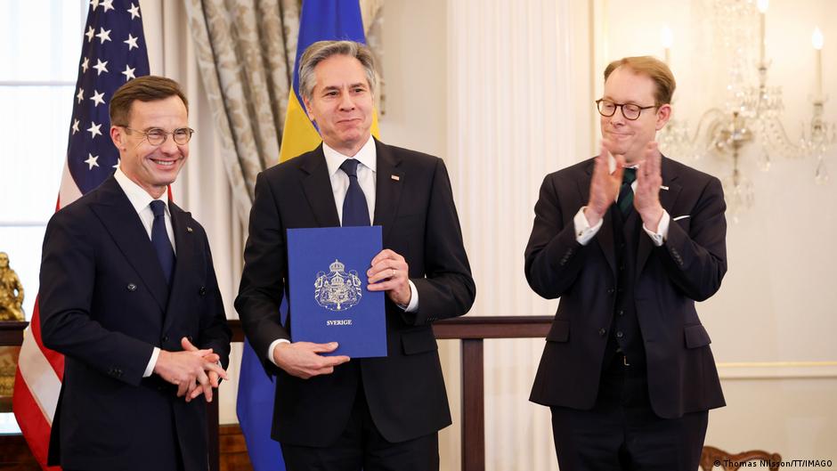بلنکن نے کہا، ”پوتن کے یوکرین پر حملے کے نتیجے میں روس کو ہونے والی اس اسٹریٹجک شکست کی اس سے واضح مثال نہیں ملتی۔‘‘ یوکرین کے صدر وولودیمیر زیلنسکی نے کہا کہ سویڈن اب ”روسی شر سے زیادہ محفوظ ہے۔‘‘ یوکرین نے 2022 میں نیٹو کا رکن بننے کے لیے درخواست دی تھی لیکن اس کی رکنیت کے لیے وقت کا تعین ہونا ابھی باقی ہے۔