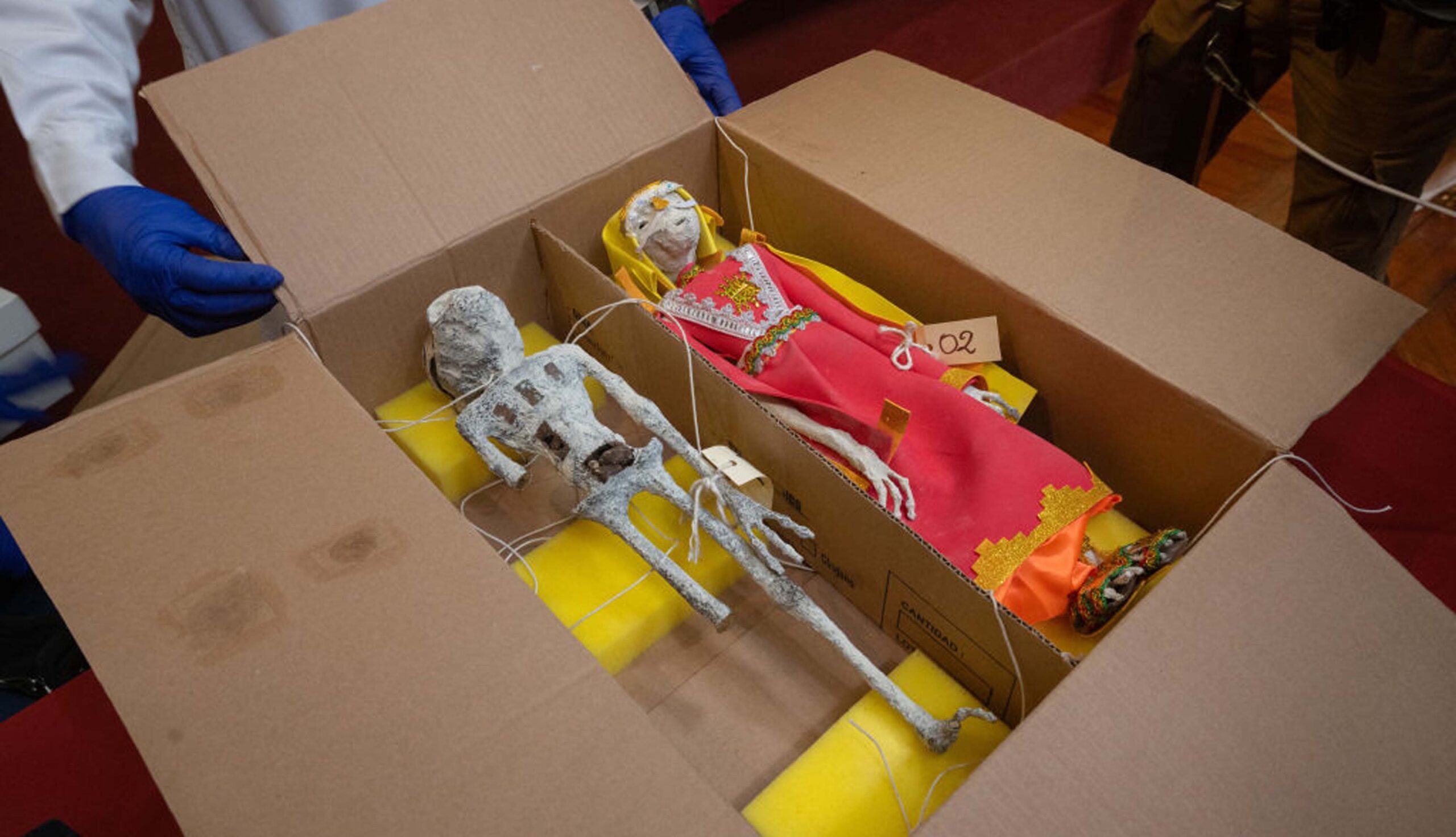 لیما: جنوبی امریکہ کے ملک پیرو میں پائی جانے والی دو مبینہ باہری دنیا کی حنوط شدہ لاشوں (ایلین ممیز) کا راز فاش کرتے ہوئے ماہرین نے انہیں انسانی ساختہ قرار دیا ہے۔ خیال رہے کہ سائنسدانوں نے گزشتہ سال اکتوبر میں پیرو کے دارالحکومت لیما کے ہوائی اڈے سے پراسرار طور پر دو ‘ممی’ پائی گئی تھیں، جس کے بعد دنیا بھر میں ان کے حوالہ سے تجسس پیدا ہو گیا تھا اور میڈیا میں انہیں ایلین ممی قرار دیا جانے لگتا تھا۔