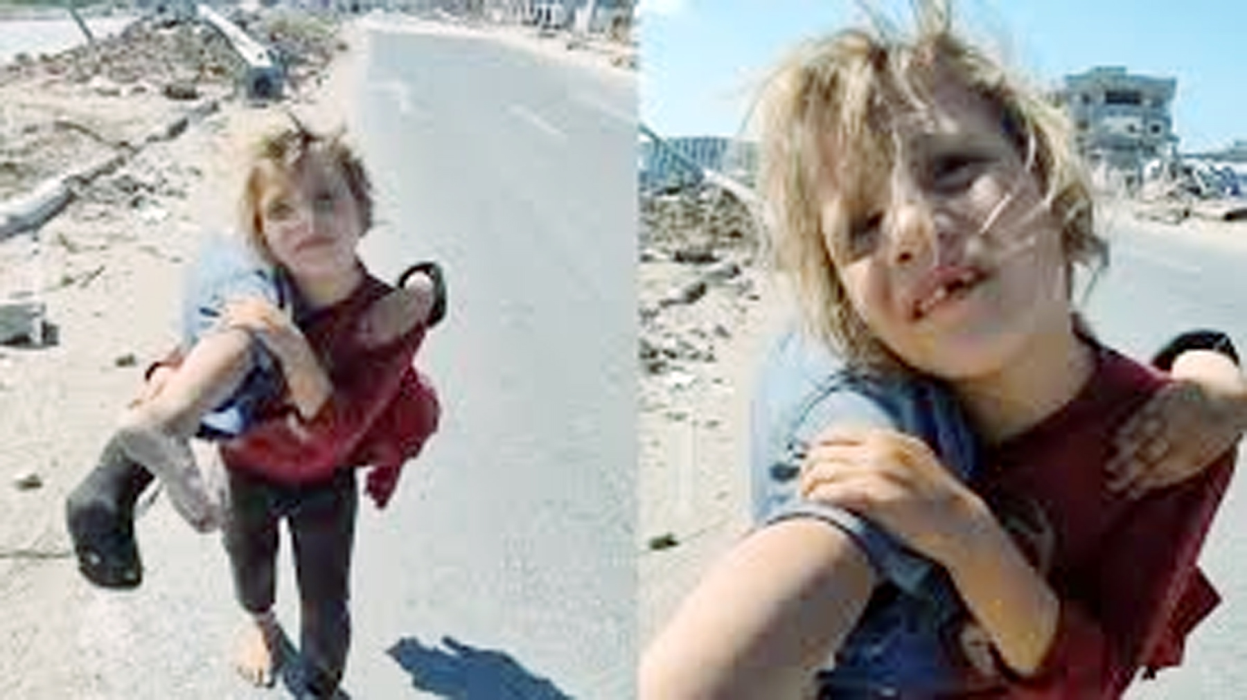 غزہ: زخمی بہن کو کندھے پر اُٹھائے فلسطینی بچی کی ویڈیو وائرل