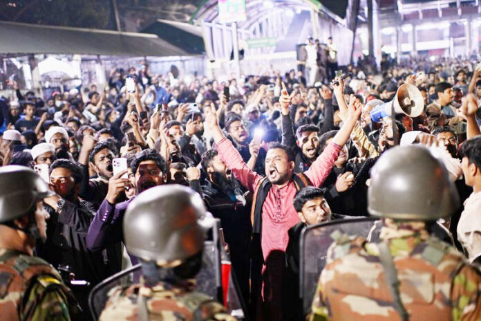 بنگلہ دیش میں انقلابی منچ تحریک کے ایک سرکردہ رہنما شریف عثمان ہادی کی موت کے بعد مشتعل ہجوم نے جمعرات کی دیر رات سے جمعہ کی صبح تک ڈھاکہ اور دیگر کئی شہروں میں زبردست ہنگامہ کیا اور ہندوستانی ہائی کمیشن کے دفتر کے باہر مظاہرہ کرتے ہوئے ہند مخالف نعرے لگائے۔بنگلہ دیش میں ’’جولائی بغاوت‘‘ کے نمایاں چہرے اور دائیں بازو کی تنظیم ’انقلاب منچ‘ کے ترجمان شریف عثمان ہادی کا جمعرات کی رات سنگاپور کے ایک اسپتال میں انتقال ہو گیا۔ 12 دسمبر کو ڈھاکہ کے بیجوئے نگر علاقے میں ایک انتخابی مہم کے دوران ہوئے حملے میں ان کے سر میں گولی لگی تھی۔ہادی کی موت کی خبر پھیلتے ہی ان کے حامی اور شدت پسند طلبا سڑکوں پر آگئے اور آگ زنی، توڑ پھوڑ اور مخصوص اہداف پر حملے شروع کر دیے۔مشتعل ہجوم نے کھلنا اور چٹاگانگ میں بھارتی اسسٹنٹ ہائی کمشنرز پر حملہ کرنے کی کوشش کی۔ چٹاگانگ میں مظاہرین ہندوستانی ہائی کمیشن کی عمارت کی جانب بڑھے، ذاکر حسین روڈ پر پولیس بیریکیڈ توڑ دیے اور احاطے کے باہر دھرنے پر بیٹھ گئے۔ اس دوران انہوں نے ’’ہندوستان کا بائیکاٹ کرو‘‘، ’’عوامی لیگ کے اڈوں کو جلا دو‘‘اور ’’ہادی کا خون رائیگاں نہیں جائے گا‘‘ جیسے نعرے لگائے۔ڈھاکہ میں مظاہرین بلڈوزر کے ساتھ آئے اور دھان منڈی 32 میں واقع بنگ بندھو شیخ مجیب الرحمن کے تاریخی گھر کے باقی ماندہ حصے کو منہدم کر دیا۔ عوامی لیگ کے کئی رہنماؤں کے دفاتر اور گھروں پر بھی حملے کیے گئے یا ان میں آگ لگا دی گئی، جن میں چشمہ ہل میں سابق وزیرِ تعلیم محیب الحسن چودھری نوفیل کا گھر اور اُترا میں سابق ڈھاکہ-18 عوامی لیگ کے رکنِ پارلیمنٹ حبیب حسن کے بھائی کا گھر شامل ہے۔مظاہرین نے ڈھاکہ کے کاروان بازار علاقے میں اخبارات دی ڈیلی اسٹار اور پروتھوم آلو کے دفاتر میں توڑ پھوڑ کی اور آگ لگا دی۔ سینکڑوں مظاہرین نے پروتھوم آلو کی عمارت کی کئی منزلوں میں توڑ پھوڑ کی، فرنیچر، دستاویزات اور آلات سڑکوں پر پھینک دیے اور پھر انہیں آگ کے حوالے کردیا۔دی ڈیلی اسٹار کے دفتر میں صورتحال اسنتہائی سنگین ہو گئی۔ وہاں کم از کم 20 صحافی اور عملے کے افراد گہرے دھوئیں کے درمیان چھت پر پھنس گئے تھے اور آگ تیزی سے عمارت میں پھیل رہی تھی۔ فائر بریگیڈ کو آگ بجھانے میں شدید مشکلات کا سامنا کرنا پڑا اور مشتعل ہجوم پر قابو پانے کے لیے فوج کو تعینات کرنا پڑا۔ تیجگاؤں اسٹیشن کی فائر یونٹ نے آخرکار رات تقریباً 1:40 بجے آگ پر قابو پا لیا۔اپنے حامیوں کے ساتھ وہاں پھنسے ہوئے نائب مدیر سبرت رائے نے کہا کہ ’’اندر بہت زیادہ دھواں ہے، چھت پر بھی سانس لینا مشکل ہو رہا ہے۔‘‘ایک اور رپورٹر عبداللہ ایم ڈی عباس نے سوشل میڈیا پر اپیل کرتے ہوئے کہا کہ ’’میرے تمام ساتھی چھت پر ہیں، وہ سانس نہیں لے پا رہے۔ براہِ کرم ہمارے لیے دعا کریں۔‘‘ بعد میں فوجی جوانوں نے علاقے کو محفوظ بنانے اور بچاؤ مہم میں مدد کی۔افسران نے ان واقعات پر تاحال کوئی سرکاری بیان جاری نہیں کیا ہے اور یہ واضح نہیں ہو سکا کہ کوئی گرفتاری عمل میں آئی ہے یا نہیں۔ ان حملوں کے بعد بنگلہ دیش میں مجموعی سلامتی کی صورتحال، سفارتی مشنز، صحافیوں اور سول سوسائٹی کے اداروں کی حفاظت کے حوالے سے ملک اور بیرونِ ملک شدید تشویش پیدا ہو گئی ہے۔
