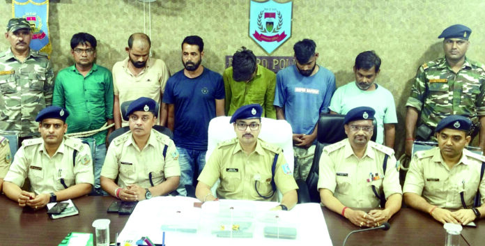بوکارو ،2؍اپریل: امن ساہو گینگ اور پرنس خان گینگ کے نام پر بھتہ مانگنے والے ایک بڑے گروہ کا بوکارو پولیس نے پردہ فاش کیا ہے۔ پولیس نے سات مجرموں کو گرفتار کیا ہے۔ ساتھ ہی مجرموں کے قبضے سے اسلحہ، موبائل فون اور دیگر سامان بھی برآمد کیا گیا ہے۔ اس کی تصدیق بوکارو ایس پی ہرویندر سنگھ نے کی ہے۔ایس پی نے بتایا کہ گرفتار مجرموں میں مرکزی سرغنہ پرنس کمار گپتا عرف بھاٹیا شامل ہے۔ پرنس کمار گپتا پر ضلع کے مختلف تھانوں میں کئی مقدمات درج ہیں۔ پولیس نے پرنس کمار گپتا کے علاوہ شیام کمار سنگھ، اجے سنگھ، اوم پرکاش پال، جینیندر شکلا، گولو کمار اور بھوپیندر سنگھ کو بھی گرفتار کیا ہے۔ گرفتار تمام ملزمان کا مجرمانہ پس منظر رہا ہے۔ایس پی نے بتایا کہ یہ گروہ تاجروں کے موبائل نمبر جمع کر کے بڑے گروہوں تک پہنچاتا تھا، جس کے بعد انہیں دھمکی دے کر بھتہ مانگا جاتا تھا۔ پولیس نے گرفتار مجرموں کے پاس سے پستول، دیسی کٹہ، زندہ کارتوس، کاربائن کے دو میگزین، موبائل فون اور سم کارڈ برآمد کیے ہیں۔ ساتھ ہی ایک اسکوٹی بھی ضبط کی گئی ہے۔