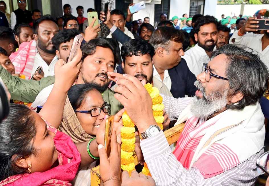 رانچی، 29 نومبر:۔ انڈیا الائنس کو مینڈیٹ ملنے کے بعد آدیواسی مولوی منچ کے سینکڑوں لوگوں نے ڈاکٹر رام دیال فٹ بال گراؤنڈ سے وزیر اعلیٰ کی رہائش گاہ تک جلوس نکالا۔ وزیراعلیٰ ہاؤس میں ایک گھنٹے تک لوگ روایتی آلات موسیقی کے ساتھ رقص کرتے نظر آئے۔ وزیراعلیٰ بننے کی خوشی میں وزیراعلیٰ ہاؤس میں پٹاخے برسائے گئے۔ اس کے بعد سی ایم ہیمنت سورین کو سی ایم کی رہائش گاہ پر مبارکباد دی گئی۔ انہیں سرنا کپڑے اور پھولوں کا گچھا دے کر ان کی عزت افزائی کی گئی۔ اس کے بعد قبائلی مقامی فورم کی جانب سے وزیراعلیٰ کو 51 کلو پھولوں کا ہار پہنا کر اعزاز سے نوازا گیا۔ آدیواسی مولوی منچ کے لوگوں نے قبائلیوں کے سلگتے ہوئے مسائل پر بھی بات کی۔