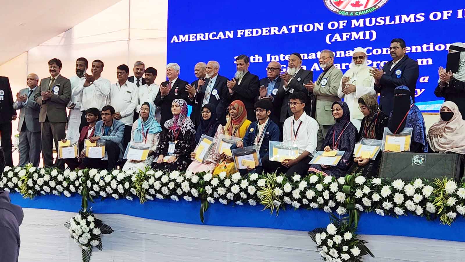 احمدآباد /رانچی،یکم؍جنوری:میٹرک اور انٹرمیڈیٹ بورڈ 2024 کے جھارکھنڈ ٹاپرز کو احمد آباد، گجرات میں امریکن فیڈریشن آف مسلم آف انڈین اوریجن (AFMI) کی طرف سے بین الاقوامی تعلیمی کنونشن اور ایوارڈز کی تقریب میں اعزاز سے نوازا گیا۔احمد آباد، گجرات امریکن فیڈریشن آف مسلم آف انڈین اوریجن (AFMI)، جو کہ امریکہ اور کینیڈا میں مقیم ایک باوقار سماجی تنظیم ہے، ہر سال ملک بھر میں اقلیتی طلباء کی تعلیمی فضیلت کا اعزاز دیتی ہے۔ اس سال بھی، AFMI کے 34ویں بین الاقوامی تعلیمی کنونشن اور گالا ایوارڈز کی تقریب کا انعقاد نکادار انسٹی ٹیوٹ آف نالج، احمد آباد میں کیا گیا، اس تقریب میں جھارکھنڈ کے آٹھ ہونہار طلباء کو گولڈ، سلور اور برونز میڈل، سرٹیفکیٹس اور اسکالرشپ سے نوازا گیا۔اس تقریب میں 10ویں اور 12ویں کے 2024 کے بورڈ امتحانات میں نمایاں کارکردگی کا مظاہرہ کرنے والے طلباء کو اعزاز سے نوازا جائے گا۔ اے ایف ایم آئی کے اس کنونشن میں بیڈ مہاراشٹر سے تعلق رکھنے والے سودار انعم کو جنہوں نے 10ویں بورڈ کے امتحان میں صد فیصد نمبر حاصل کیے تھے اور بلاس پور چھتیس گڑھ سے تعلق رکھنے والی سمرن صبا جو اصل میں لوہردگا، جھارکھنڈ کی رہنے والی ہیں ، انہوںنے 50.99 فیصد نمبر حاصل کی تھی، کو بھی اعزاز سے نوازا گیا۔ اس پروقار تقریب میں ہندوستان کی تمام ریاستوں سے تقریباً 80 طلباء و طالبات کو اعزاز سے نوازا گیا۔اس تقریب میں امریکہ، کینیڈا اور آسٹریلیا کے درجنوں AFMI اراکین نے شرکت کی۔ پروگرام کے مہمان خصوصی انجمن اسلامیہ ممبئی کے صدر پدم شری ڈاکٹر ظاہر قاضی نے بچوں سے خطاب کرتے ہوئے کہا کہ انہوں نے اپنی محنت اور لگن سے اپنے خاندان، اسکول، اساتذہ اور معاشرے کا نام روشن کیا ہے۔ اپنی کامیابی میں اپنے والدین اور اساتذہ کے کردار کو کبھی نہ بھولیں۔ اس کی برکت اور رہنمائی نے آپ کی راہیں آسان کر دیں۔ یہ اعزاز آپ کے سفر کا اختتام نہیں بلکہ ایک نئی شروعات ہے۔ اے ایف ایم آئی کے صدر علی قریشی نے کہا کہ خواب وہ نہیں جو ہم سوتے ہوئے دیکھتے ہیں، خواب وہ ہوتے ہیں جو ہمیں سونے نہیں دیتے۔ اپنے خوابوں کو پورا کرنے کے لیے سخت محنت کریں اور کبھی ہمت نہ ہاریں۔ یہ دنیا ان لوگوں کی ہے جو اپنے خوابوں کو اپنی کوششوں سے پورا کرتے ہیں۔