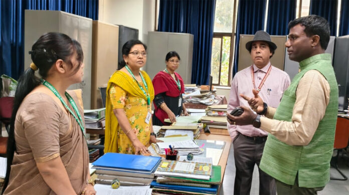 رانچی، 07؍ مارچ: ہولی کی تعطیلات کے بعد دفاتر میں کام کے نظام کو مستحکم اور منظم بنائے رکھنے کے مقصد سے ڈپٹی کمشنر کم ضلع مجسٹریٹ، رانچی منجوناتھ بھجنتری نے آج کلکٹریٹ کے احاطے میں واقع مختلف دفاتر کا اچانک معائنہ کیا۔شام تقریباً چار بجے کے بعد ڈپٹی کمشنر منجوناتھ بھجنتری نے کلکٹریٹ بلاک-اے کے تمام دفاتر کا معائنہ کیا اور وہاں موجود ملازمین کے طریقہ کار اور دفتری نظام کا جائزہ لیا۔ اس دوران انہوں نے دفاتر میں موجود ملازمین سے کام سے متعلق معلومات حاصل کیں اور ضروری ہدایات دیں۔