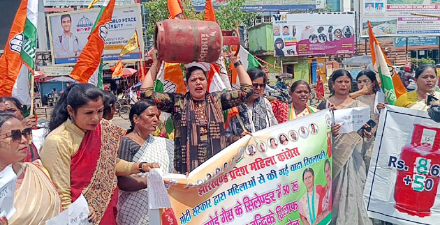 رسو ئی گیس سلنڈر کی قیمتوں میں اضافہ کے خلافجھارکھنڈ ریاستی مہیلا کانگریس کمیٹی کا البرٹ یکہ چوک پر احتجاج