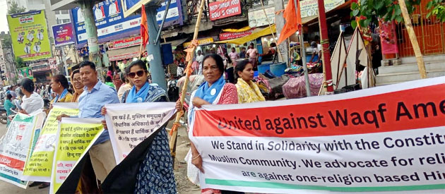 رانچی ، 3 ؍مئی: ’ساجھا قدم‘ کے بینر تلے درجنوں سماجی کارکنوں نے آج رانچی کے البرٹ ایکا چوک پر وقف ایکٹ میں کی گئی حالیہ تبدیلیوں کے خلاف مظاہرہ کیا۔ مظاہرین نے ہاتھوں میں تختیاں لے کر پرامن طریقے سے اپنے احتجاج کیا اور حکومت سے اس قانون پر نظر ثانی کا مطالبہ کیا۔احتجاج میں شامل سماجی کارکنوں نے کہا کہ وہ مسلم کمیونٹی کے آئینی حقوق کے ساتھ کھڑے ہیں اور ہندوستان کی مذہبی آزادی کی روایت کے حق میں ہیں۔ انہوں نے کہا کہ وہ مذہب پر مبنی ہندو قوم کے تصور کی مخالفت کرتے ہیں اور سیکولر ہندوستان کے تحفظ کے لیے پرعزم ہیں۔اس احتجاج میں پراویر پیٹر، ٹام ، ٹونی، لینا، تارا منی ساہو، ایلینا ہورو سمیت کئی سماجی کارکن موجود تھے۔ سبھی نے ایک آواز میں کہا کہ یہ آندولن کسی ایک مذہب کیلئے نہیں، بلکہ ہندوستان کی تکثیریت اور آئینی اقدار کیلئے ہے۔