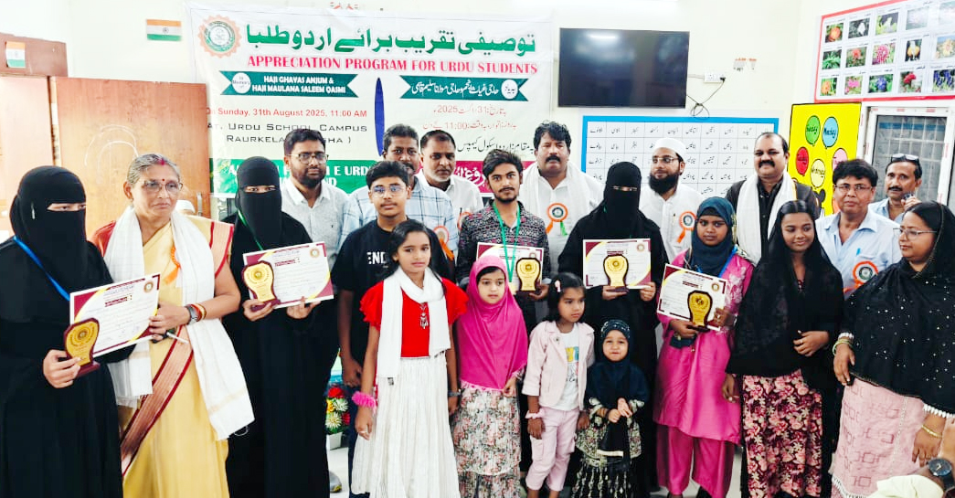رائورکیلا؍رانچی31؍اگست (راست) انجمن فروغ اردو کے زیر اہتمام ضلع سندر گڑھ کے اردو اسکول کیمپس،راؤرکیلا (اوڈیشا) میں میٹرک اور انٹرمیڈیٹ کے طلبا کے لیے توصیفی تقریب کا اہتمام کیا گیا جس میں اردو سبجیکٹ میں 60 فیصد سے زیادہ نمبرات حاصل کرنے والے طلبا کو مومنٹو، سرٹیفکیٹ اور میڈل وغیرہ سے نوازا گیا۔ پروگرام کا باقاعدہ آغاز مفتی ظفر قاسمی کے تلاوت کلام پاک سے ہوا۔ اس پروگرام کا استقبالیہ پلانٹ سائیٹ اردو اسکول کے صدر مدرس الطاف شکیل نے پیش کیا۔ واضح رہے کہ یہ پروگرام حاجی غیاث انجم اور حاجی سلیم قاسمی کی یاد میں منعقد کیا گیا تھا۔ ان دونوں مرحومین کی یاد میں الطاف شکیل نے کئی اہم باتیں بتائیں اور کہا کہ ایک وقت گزر جانے کے بعد بھی ان کی یادیں ہمارے دلوں میں محفوظ ہیں۔ اس کے بعد جھال سگڑا سے تشریف لائے عبدالودود نے اردو کے حوالے سے کئی اہم باتیں بتائیں۔ انجمن فروغ اردو کے سکریٹری محمد غالب نشتر نے انجمن فروغ اردو کے اغراض مقاصد پر ایک اہم تقریر کی اور انہوں نے یقین دہانی کرائی کہ میٹرک اور انٹرمیڈیٹ میں پاس اردو طلبا کے لیے اردو کے حوالے سے مواد کی فراہمی کا مسئلہ اب درپیش نہیں ہوگا کیونکہ انجمن فروغ اردو آن لائن اور آف لائن اردو کلاسیز منعقد کرتی ہے۔ اس پروگرام میں راور کیلا شہر کے اردو کوچنگ کے بے لوث خادموں کو بھی مدعو کیا گیا تھا تاکہ وہ بھی بچوں کی حوصلہ افزائی کر سکیں۔پروگرام کے آخر میں مفتی ظفر قاسمی نے تعلیم کی اہمیت کے عنوان سے صدارتی خطبہ پیش کیا اور انہوں نے طلبا اور ان کے گارجین کو تعلیم جاری رکھنے کا مشورہ دیا۔ اس کے بعد میٹرک اور انٹرمیڈیٹ میں 90 فیصد سے زیادہ نمبرات حاصل کرنے والے طلبا کو اعزاز سے نوازا گیا۔پروگرام کی نظامت ماسٹر محمد عارف اور الطاف شکیل سر نے مشترکہ طور پر انجام دیے۔ شہلا تبسم کے رسم شکریہ کے ساتھ پروگرام کے اختتام کا اعلان کیا گیا۔