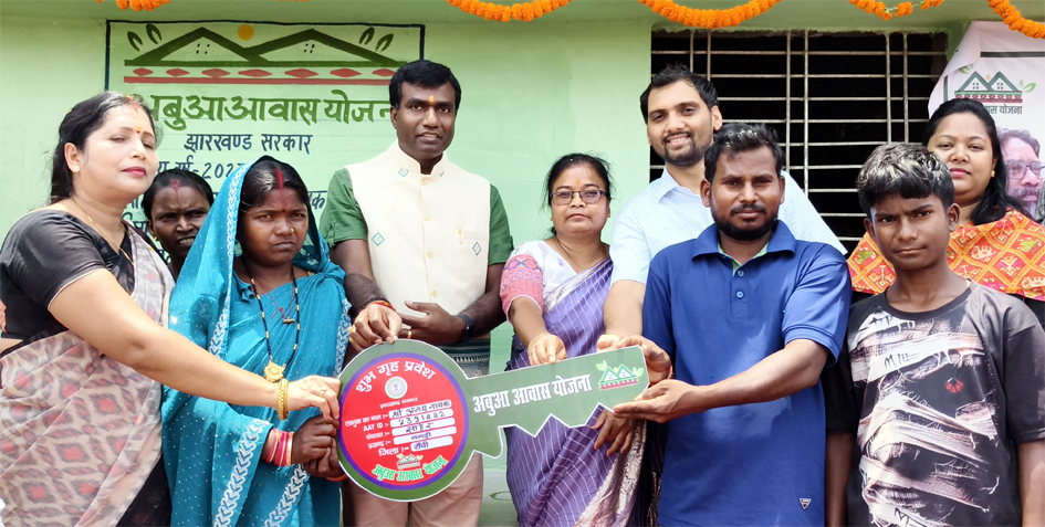 آج نگڑی بلاک کے ساہر پنچایت کے رہنے والے اجے نائک اور ان کی بیوی بہت خوش تھے۔ ڈپٹی کمشنر-کم-ڈسٹرکٹ مجسٹریٹ شری منجوناتھ بھجنتری ابووا ہاؤسنگ اسکیم کے تحت گرہ پرویش کی تقریب کے لیے ان کی رہائش گاہ پر پہنچے تھے۔ انہوں نے ضلع کونسل کے چیئرمین، ممبران اور مستحقین کے ہمراہ فیتہ کاٹ کر گھر کا افتتاح کیا۔ اس دوران ڈپٹی ڈیولپمنٹ کمشنر، رانچی مسٹر دنیش کمار یادو، بلاک ڈیولپمنٹ آفیسر، زونل آفیسر اور دیگر متعلقہ افسران/ملازمین موجود تھے۔رانچی ضلع میں 3533 مستفیدین نے ابوا ہاؤسنگ میں گھر کا داخلہ لیا۔آج رانچی ضلع کے تمام 18 بلاکوں میں ابوا ہاؤسنگ اسکیم کے استفادہ کنندگان کے لیے گرہ پر ویش پروگرام کا انعقاد کیا گیا۔ پورے ضلع میں 3533 مستحقین کی ہاؤس وارمنگ کی تقریب کی گئی۔ تمام بلاکس میں مقامی عوامی نمائندوں اور اعلیٰ عہدیداروں نے مستحقین کے گرہ پر ویش کی تقریب کی۔ انگڑا میں 272، بیڑو میں 171، بنڈو میں 94، بڑھمو میں 149، چانہو میں 290، اٹکی میں 150، کانکے میں 355، کھلاری میں 203، لاپونگ میں 124، مانڈر میں 288، نگڑی میں 161، نامکم میں ، راتو میں 152، سلی میں 219، سوناہاتو میں 101 اورتماڑ بلاک میں 171 مستفیدین نے اپنے ابوا مکانات پر قبضہ حا صل کر لیا۔ابوآ اواس کے مستحقین نے اپنے تجربات بتائے۔نگری کی ساہر پنچایت میں منعقدہ ایک پروگرام میں، ابوا ہاؤسنگ اسکیم کے استفادہ کنندگان نے ڈپٹی کمشنر-کم-ضلع مجسٹریٹ مسٹر منجوناتھ بھجنتری کے ساتھ اپنے تجربات کا اشتراک کیا۔ استفادہ کنندگان نے کہا کہ انہوں نے حکومت میں آپ کی دہلیز پروگرام میں اسکیم کے فوائد کے لیے درخواست دی تھی اور اب ان کا خواب پورا ہوگیا ہے۔ ڈپٹی کمشنر نے اپنے خطاب میں کہا کہ دیگر مستحقین جن کو قسطیں ادا کر دی گئی ہیں وہ جلد اپنے مکانات تعمیر کریں۔ مکانات کی تکمیل کے بعد ان کی ہاؤس وارمنگ کا پروگرام منعقد کیا جائے گا۔ رانچی ضلع میں ابووا ہاؤسنگ اسکیم کے تحت پہلی قسط 13065 مستحقین کو، دوسری قسط 11724 مستحقین کو اور تیسری قسط 8468 مستحقین کو ادا کی گئی ہے۔خواتین عزت کے ساتھ خود انحصار بنیں – ڈپٹی کمشنر مسٹر منجوناتھ بھجنتریپروگرام کے دوران ڈپٹی کمشنر مسٹر منجوناتھ بھجنتری نے مینیاں سمان کے ذریعے خود انحصاری کے بارے میں بات کی۔ انہوں نے اسکیم سے مستفید ہونے والوں سے کہا کہ وہ 500 روپے کے اعزازیہ سے اپنی مالی حالت کو مضبوط بنا سکتے ہیں۔ ہر ماہ 2500 وصول کرتے ہیں۔ ضلعی انتظامیہ انڈے کی پیداوار اور بکری پالنے کے لیے اسکیم سے مستفید ہونے والوں کی حوصلہ افزائی کر رہی ہے۔ اپریل 2025 تک مینیہ سمان یوجنا کے 3051 مستفیدین میں 1,59300 چوزے تقسیم کیے جا چکے ہیں اور 350 مستفیدین میں 730 بکرے تقسیم کیے جا چکے ہیں۔ڈپٹی کمشنر نے ساہر پنچایت کے گاؤں والوں سے جانکاری مانگی کہ آیا انہیں حکومت کی مختلف عوامی فلاحی اسکیموں کا فائدہ مل رہا ہے یا نہیں۔ انہوں نے BDO-CO کو ہدایت دی کہ وہ رہ جانے والے اہل افراد کی پنشن کو یقینی بنائیں۔ انہوں نے کہا کہ اگر کوئی مسئلہ ہو تو ابوا ساٹھی (9430328080) کو آگاہ کریں۔