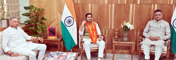 چترا؍دہلی، 6اگست:چترا لوک سبھا حلقہ کے ایم پی کالی چرن سنگھ نے مرکزی ہاؤسنگ اور شہری ترقی کے وزیر توکھن ساہو سے دہلی میں ان کی وزارت میں ایک بشکریہ ملاقات کی۔ انہوں نے انہیں علاقے کے مسائل سے آگاہ کیا اور اس سمت میں ٹھوس اقدامات کرنے کی ضرورت کا اعادہ کیا۔ایم پی سنگھ نے علاقے سے متعلق مختلف ترقیاتی مسائل پر تبادلہ خیال کیا اور مرکزی حکومت کی طرف سے چلائی جارہی فلاحی اسکیموں کے نفاذ پر تفصیل سے تبادلہ خیال کیا۔رکن پارلیمنٹ نے چترا لوک سبھا حلقہ میں شہری ترقی، ہاؤسنگ اسکیم، سڑکیں، پینے کے پانی اور صفائی ستھرائی سے متعلق منصوبوں کے لیے مرکز سے خصوصی تعاون کا مطالبہ کیا ہے۔انہوں نے دیہی اور شہری علاقوں میں مساوی ترقی کو یقینی بنانے کے لیے ٹھوس اقدامات کرنے پر زور دیا۔مرکزی وزیر توکھن ساہو نے رکن پارلیمنٹ کالی چرن سنگھ کو یقین دلایا کہ خطے کی ضروریات اور مفاد عامہ سے متعلق تمام مسائل کو ترجیحی بنیادوں پر اٹھایا جائے گا۔انہوں نے یقین دلایا کہ مودی حکومت پرعزم ہے کہ ملک کا کوئی بھی خطہ ترقی سے محروم نہ رہے اور ہر شہری کو بہتر بنیادی سہولیات فراہم کی جائیں۔ ہزاری باغ لوک سبھا حلقہ کے رکن پارلیمنٹ منیش جیسوال بھی اس بشکریہ دورے میں موجود تھے۔