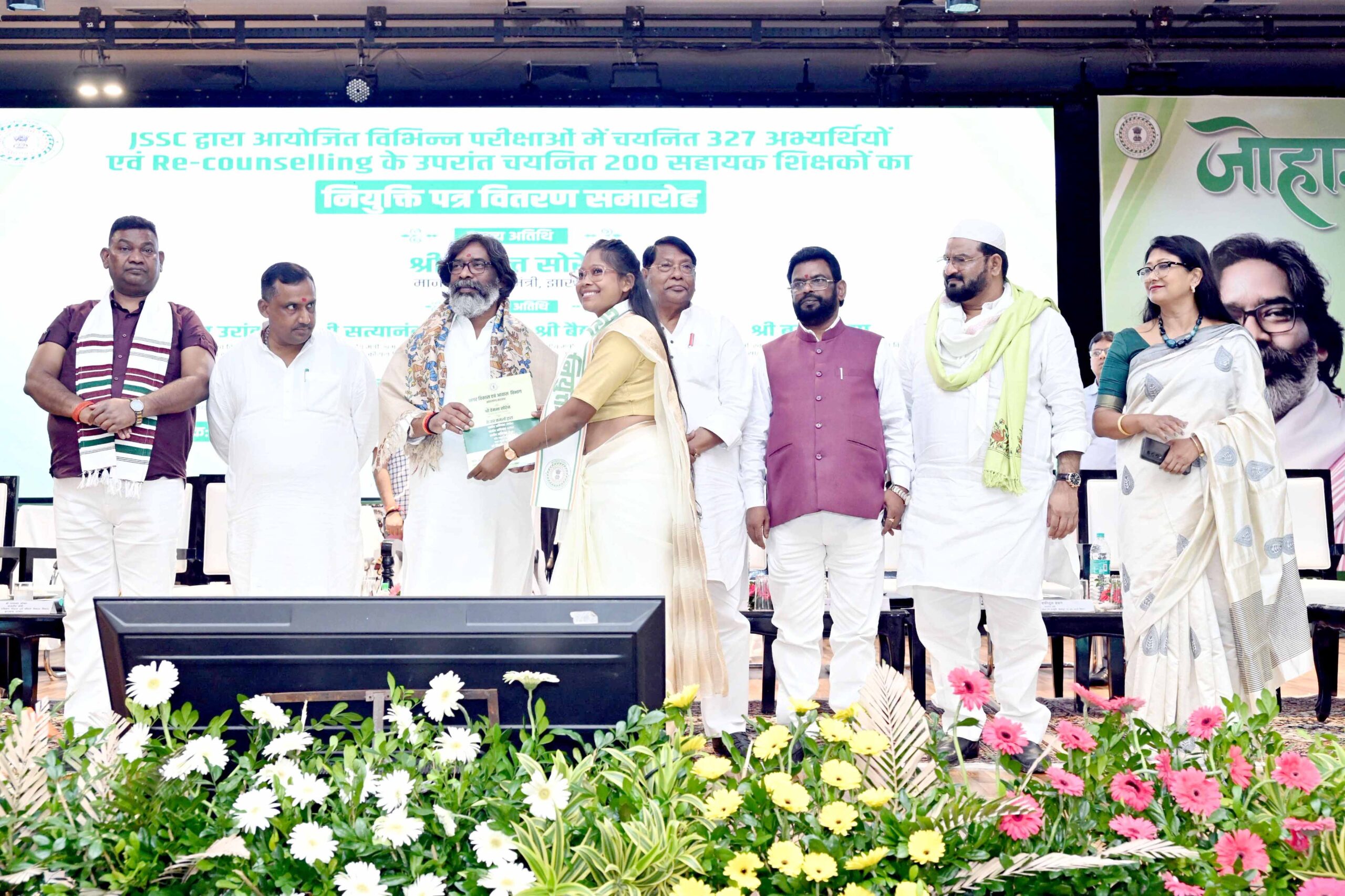 رانچی، 27 ستمبر:۔ سی جی ایل امتحان سے متعلق جاری تنازعہ کے درمیان، وزیر اعلیٰ ہیمنت سورین نے آج 27 ستمبر کو جے ایس ایس سی کے ذریعہ مختلف عہدوں پر منتخب 527 امیدواروں میں تقرری خط تقسیم کئے۔ JAP-Iآڈیٹوریم میں منعقدہ تقرری نامہ تقسیم کرنے کی تقریب سے خطاب کرتے ہوئے وزیر اعلیٰ نے نو منتخب امیدوار اور ان کے اہل خانہ کو مبارکباد دی۔ اس موقع پر خطاب کرتے ہوئے وزیر اعلیٰ نے کہا کہ ریاست میں تقرری کا عمل مسلسل جاری ہے۔