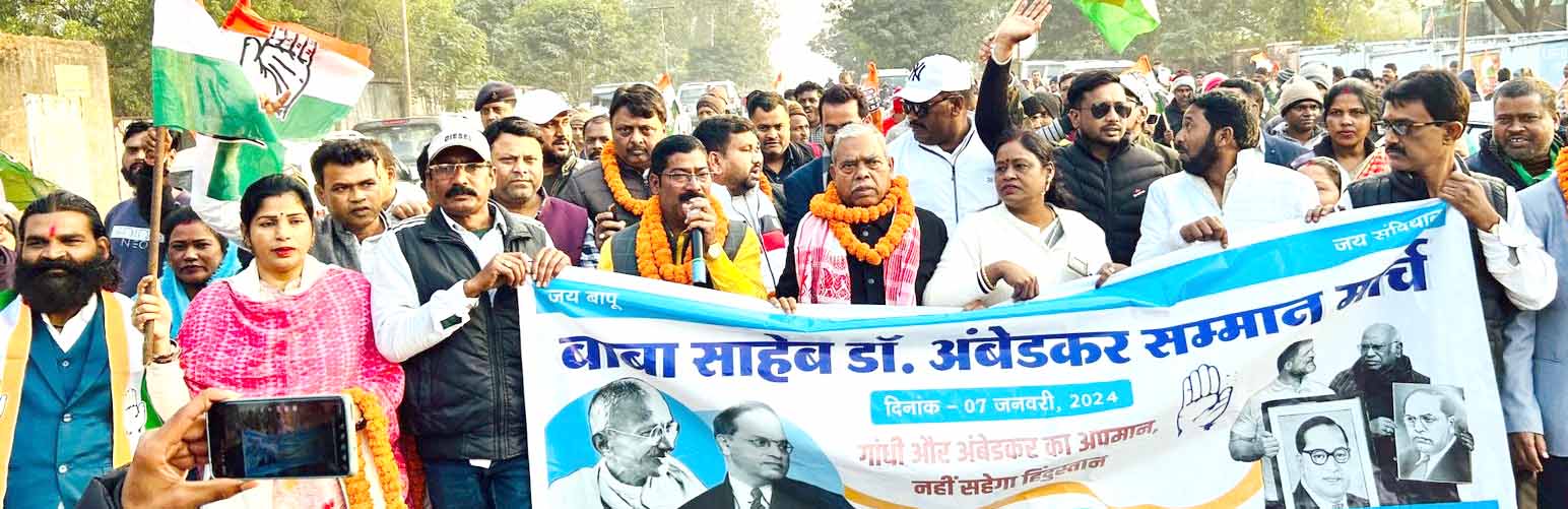 رانچی، 7 جنوری: کانگریس آئین کی اقدار، سماجی انصاف اور مساوات کے تحفظ کے لیے پوری طرح پرعزم ہے اور جس طرح سے بی جے پی کی قیادت والی مرکزی حکومت ان اقدار پر مسلسل حملہ کر رہی ہے، جو جمہوریت کیلئے اچھا نہیں ہے۔ ان اقدار کو بچانے کیلئے کانگریس نے ریاست کے اضلاع اور بلاکس میں مسلسل جئے باپو، جئے بھیم، جئے آئین مہم شروع کی ہے۔ جس کے تحت منگل کو ریاستی کانگریس کمیٹی کے صدر کیشو مہتو کملیش نے رانچی ضلع کے کھلاری بلاک میں امبیڈکر سمّان مارچ میں شرکت کی۔ سمّان مارچ سے خطاب کرتے ہوئے کیشو مہتو کملیش نے کہا کہ ریاست اور ملک کے عوام بی جے پی کو منہ توڑ جواب دیں گے جو آئین کے خالق بابا صا حب کے خوابوں کو چکنا چور کرنے کا ارادہ رکھتی ہے جس نے اس ملک کے محروم لوگوں کو حقو ق دلائے تھے۔انہوں نے کہا کہ ہمارے آئین نے عام لوگوں کو بہت سے حقوق دیئے ہیں اور ہر ہندوستانی کو مساوی حقوق بھی فراہم کیے ہیں، لیکن آج ہمارے آئین پر مسلسل حملے ہو رہے ہیں۔ اور اس شخص کو کمزور کرنے کی کوشش کی جا رہی ہے جس کی حفاظت آپ کی ذمہ داری ہے۔ سمّان مارچ میں ایم ایل اے سریش بیٹھا، رویندر سنگھ، بنے سنہا دیپو، ستیش پال منجنی، ڈاکٹر راکیش کرن مہتو، راجن سنگھ راجہ،اندرا توری، کیدار پاسوان، پنکی سنگھ، راجو رام، جگرناتھ ساہو،وششٹھ لال پاسوان وغیرہ شامل تھے۔