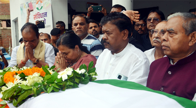 رانچی،11 جولائی: کانگریس کے سینئرلیڈر، سابق وزیر، سابق ایم پی چندر شیکھر دوبے عرف ددئی دوبے کے انتقال کے بعد کانگریس کی طرف سے ان کی لاش کو آج ریاستی کانگریس ہیڈکوارٹر، رانچی لایا گیا۔جہاں ریاستی کانگریس کے صدر کیشو مہتو کملیش، کانگریس کے وزراء، ایم ایل ایز اور سینئرلیڈروں نے ان کے جسم پر کانگریس کا جھنڈا لگایا۔ اس کے بعد ایک تعزیتی اجلاس کا انعقاد کیا گیا۔تعزیتی اجلاس سے خطاب کرتے ہوئے ریاستی کانگریس کے صدر کیشو مہتو کملیش نے کہا کہ آنجہانی ددئی دوبے کی جھارکھنڈ بہار کی سیاست میں ایک الگ پہچان تھی، انہوں نے کبھی عزت اور احترام کے ساتھ سمجھوتہ نہیں کیا، ایسے لیڈر سیاست میں کم ہی ملتے ہیں۔انہوں نے اپنے کام سے سیاست میں ایک لمبی لکیر کھینچ دی ہے جس کی تلافی مستقبل قریب میں ممکن نہیں۔کانگریس کے شریک انچارج ڈاکٹر سریویلا پرساد نے تعزیت کا اظہار کرتے ہوئے کہا کہ چندر شیکھر دوبے کانگریس پارٹی میں ایک مضبوط ستون تھے۔ یہ پارٹی کے لیے ناقابل تلافی نقصان ہے۔جن لوگوں نے تعزیت کا اظہار کیا ان میں وزیر دیپیکا پانڈے سنگھ، ڈاکٹر عرفان انصاری، شلپی نیہا ترکی، ڈاکٹر رامیشور اورائوں، راجیش ٹھاکر، کمار جئے منگل، انوپما سنگھ، بندھو ترکی، سبودھ کانت سہائے، شہزادہ انور، راکیش سنہا، ستیش پال منجنی، گجیندر سنگھ، لال کشور ناتھ شاہدیو، بادل پتر لیکھ، پردیپ تلسیان، فرقان انصاری، منظور احمد انصاری، راجیو رنجن پاسوان، جئے شنکر پاٹھک، سنجے لال پاسوان، راجن ورما، کے این ترپاٹھی، بھیم کمار، سریندر سنگھ، ڈاکٹر ایم توصیف، سوریہ کانت شکلا، شانتنو مشرا، جیوتی سنگھ متھارو، نرنجن پاسوان، جگدیش ساہو، رشیکیش سنگھ، راکیش کرن مہتو، بھاگیرتھ پاسوان،گنجن، امولیا نیرج کھلکھو، کیدار پاسوان، جوسائی مارڈی، سدھیر چندرونشی، سنیت شرما، آلوک تیواری، رینو دیوی، منا سنگھ، نریندر لال گوپی، راجیو چودھری، اجے سنگھ، امیت ساہو، راماشنکر تیواری، وویک شکلا، سنجے کمار، یوگیندر سنگھ بینی، راجو رام، رشمی چندر پنگوا، رامانند کیشری وغیرہ موجود تھے۔