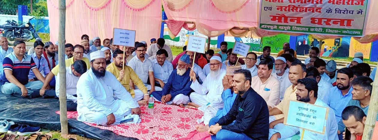کوڈرما، 5: پیغمبر اسلام کی شان میں نازیبا بیان کا ویڈیو سوشل میڈیا پر وائرل ہونے کے بعد ملک کے مختلف شہروں میں مہنت رام گیری مہاراج اور نرسمہانند مہاراج کے خلاف قانونی کارروائی کا مطالبہ کیا جا رہا ہے۔ اسی سلسلے میں سنیچر کو ضلع کے مختلف علاقوں سے مسلم کمیونٹی کے لوگ کلکٹریٹ کے احاطے میں جمع ہوئے اور پرامن اور خوشگوار ماحول میں احتجاج کیا۔ ساتھ ہی میگا بھر دواج کو صدر جمہوریہ کےنام ایم میمورنڈم پیش کیا گیا۔ جس میں اتر پردیش کے ڈاسنا کے رہنے والے سوامی نرسمہانند کے خلاف سخت کارروائی کا مطالبہ کیا گیا ہے۔ اس دوران دھرنے پر بیٹھے مولانا شہادت حسین نے کہا کہ نبی کریمؐ نے انسانیت کے لیے عظیم قربانی دی اور امن اور بھائی چارے کا پیغام دیا جس کا تمام مذاہب کے لوگ احترام کرتے ہیں۔ انہوں نے کہا کہ نرسمہانند کے ذریعہ نبی کریم کی شان میں قابل بیان سے ملک اور دنیا کے مسلمانوں کو تکلیف پہنچی ہے۔ مسلم معاشرہ اس بے حیائی سے مجروح ہوا ہے اور شدید غصہ ہے۔ یہی وجہ ہے کہ ضلع بھر سے مسلم طبقہ کے دانشور طبقے کے لوگ اکٹھے ہوئے اور پرامن طریقے سے خاموش احتجاج کیا اور ڈپٹی کمشنر کو میمورنڈم سونپا اور نرسمہانند کے خلاف سخت کارروائی کا مطالبہ کیا۔ اس دوران ساجد حسین للو اور خالد خلیل نے کہا کہ کسی بھی مذہب یا مذہبی رہنما کے بارے میں قابل اعتراض تبصرہ کرنا غیر قانونی ہے، ہمارا آئین اس کی اجازت نہیں دیتا۔ ہم حکومت سے مطالبہ کرتے ہیں کہ حکومت اور سپریم کورٹ نبی کریم ؐ کے بارے میں قابل اعتراض تبصرہ کرنے والوں کے خلاف مناسب کارروائی کرے تاکہ ملک میں نفرت کرنے والے سبق سیکھ سکیں۔ تاہم ضلع کے مسلم کمیونٹی کے لوگوں نے ملزم کی گرفتاری کا مطالبہ کرتے ہوئے کہا کہ ہم سب کچھ برداشت کر سکتے ہیں لیکن نبی کریم کی شان میں ذرا سی بھی توہین برداشت نہیں کر سکتے۔ احتجاجی مظاہرے میں مولانا شہادت حسین، مولانا عاشق الرحمن، سماجی کارکن ساجد حسین للو، خالد خلیل، انوارالحق، ارمان خان، شکیل احمد، غلام جیلانی، سعید نسیم، ارشد خان، حاجی آفتاب، مولانا رزاق، مولانا منظور عالم، حافظ اختر، محمد امجد، مولانا شاہنواز، اختر حسین، کوثر خان مکھیا، عرفان انصاری، سلیم احمد، شمیم ​​خان، شمشاد عالم، وصی احمد خان، زبیر خان، اشرف علی، سلیم خان ، سونو خان، شاداب خان، محمد جاوید سمیت مسلم کمیونٹی کے سینکڑوں افراد موجود تھے۔