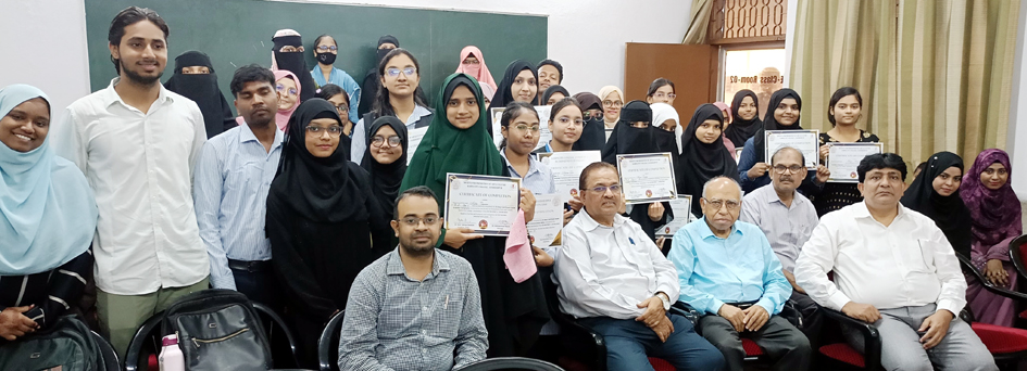 جمشید پور 2 جولائی 2025 (راست ) کریم سٹی کالج، ساکچی، جمشید پور میں ایک تقریب تقسیم اسناد کا انعقاد کیا گیا جس میں پرنسپل ڈاکٹر محمد ریاض نے “سمر ویکیشن سرٹیفکیٹ کورس” مکمل کرنے والے طلباء کو اسناد تقسیم کیں۔ کالج کے ثقافتی اور ادبی ادارے “اسپارک” (سوسائٹی فار پروموشن آف آرٹ اینڈ کلچر) کے زیراہتمام 30 گھنٹے پر مبنی سمر ویکیشن سرٹیفکیٹ کورسز چلائے گئے جس میں 43 طلباء نے داخلہ لیا۔ 21 طلبہ نے انگلش اسپیکنگ کورس، 15 طلبہ نے عربی خطاطی اور 07 طلبہ نے اردو رسم الخط کا کورس کیا۔ اس موقع پر پرنسپل ڈاکٹر محمد ریاض نے طلباء کو مبارکباد دیتے ہوئے کہا کہ آپ نے دیگر لوگوں کی طرح گرمیوں کی چھٹیاں یوں ہی نہیں گزاریں بلکہ اس کا صحیح استعمال کیا اور ایک نئی قسم کی تعلیم حاصل کی۔ پرنسپل نے یہ وعدہ بھی کیا کہ ہم نہ صرف اپنے طلباء کے لیے بلکہ معاشرے کے ہر دلچسپی رکھنے والے فرد کے لیے بھی ایسے کورسز چلائیں گے جس سے معاشرے کی بھلائی ہو سکے۔طلباء سے خطاب کرتے ہوئے “اسپارک” کے کوآرڈینیٹر ڈاکٹر ایس ایم یحییٰ ابراہیم نے کہا کہ آپ نے جو کچھ بھی سیکھا ہے وہ آپ کے لیے ایک انمول دولت ہے اور اس کی حفاظت کرنا آپ کی ذمہ داری ہے۔ مطلب یہ ہے کہ آپ اسے استعمال کریں اور اسے عملی جامہ پہنائیں۔ان کے علاوہ تینوں کورسز کے اساتذہ پروفیسر اے کے داس، پروفیسر محمد عیسیٰ، پروفیسر ساکیت کمار اور شہناز پروین اور ثریا پروین نے بھی طلبہ سے خطاب کیا۔ انہوں نے انہیں مبارکباد دی اور اپنی بے پناہ خوشی اور اطمینان کا اظہار کیا۔ طلباء نے بھی کالج کی ایسی کاوشوں کو سراہا اور اپنے اساتذہ کی تعریف کی۔