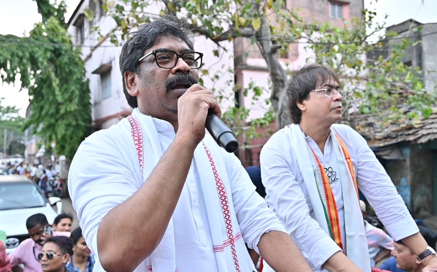 کولکاتہ،26؍اپریل: جھارکھنڈ مکتی مورچہ (JMM) کے قدآور رہنما اور وزیراعلیٰ ہیمنت سورین نے مغربی بنگال کے اسمبلی انتخابات کے تناظر میں ایک اہم سیاسی دورہ کیا ہے، جس سے خطے کی سیاست میں نئی گرمجوشی پیدا ہوگئی ہے۔ دم دم اسمبلی حلقہ میں ایک بڑے عوامی اجتماع سے خطاب کرتے ہوئے ہیمنت سورین نے کھل کر ممتا بنرجی اور ترنمول کانگریس کی حمایت کا اعلان کیا ہے۔ہیمنت سورین نے اپنے خطاب کا آغاز روایتی انداز میں عوام کو سلام پیش کرتے ہوئے اور ’جے بنگال‘کے پرجوش نعروں سے کیا، جس کا جواب وہاں موجود ہزاروں حامیوں نے جوش و خروش سے دیا۔ انہوں نے سٹیج پر موجود ترنمول کانگریس کے رہنماؤں، بالخصوص رکن پارلیمنٹ سوگت رائے اور ریاستی وزیر چندریما بھٹاچاریہ کا شکریہ ادا کیا اور انہیں دم دم کی مقبول قیادت‘قرار دیا۔ہیمنت سورین نے ممتا بنرجی کو ملک کی ’سرفہرست خاتون رہنما‘اور ’غریبوں کی بلند آواز‘ قرار دیتے ہوئے کہا کہ وہ یہاں ان کی حمایت اور تعاون کے لیے آئے ہیں۔ انہوں نے واضح کیا کہ اس وقت بنگال میں انتخابی معرکہ اپنے عروج پر ہے اور وہ یہاں ٹی ایم سی کی مدد کرنے اور ممتا دیدی کے ہاتھ مضبوط کرنے کے لیے موجود ہیں۔ ان کا کہنا تھا کہ بنگال کا الیکشن محض ایک ریاست کا انتخاب نہیں بلکہ ملک کی سیاسی سمت کا تعین کرنے والا موڑ ہے۔اپنے خطاب کے دوران ہیمنت سورین نے مخالفین پر سخت تنقید کی جو مختلف رنگوں کے جھنڈے اور بینر لے کر عوام کو تقسیم کرنے کی کوشش کر رہی ہیں۔ انہوں نے جھارکھنڈ سے اپنے تعلق کا حوالہ دیتے ہوئے کہا کہ بنگال اور جھارکھنڈ کا رشتہ بہت گہرا ہے، اور وہ ان تمام لوگوں کا شکریہ ادا کرنے آئے ہیں جنہوں نے اس جدوجہد میں ساتھ دیا۔ انہوں نے بتایا کہ دم دم سے قبل وہ ’سیب پور‘میں بھی ایک کامیاب روڈ شو اور پروگرام کر چکے ہیں۔