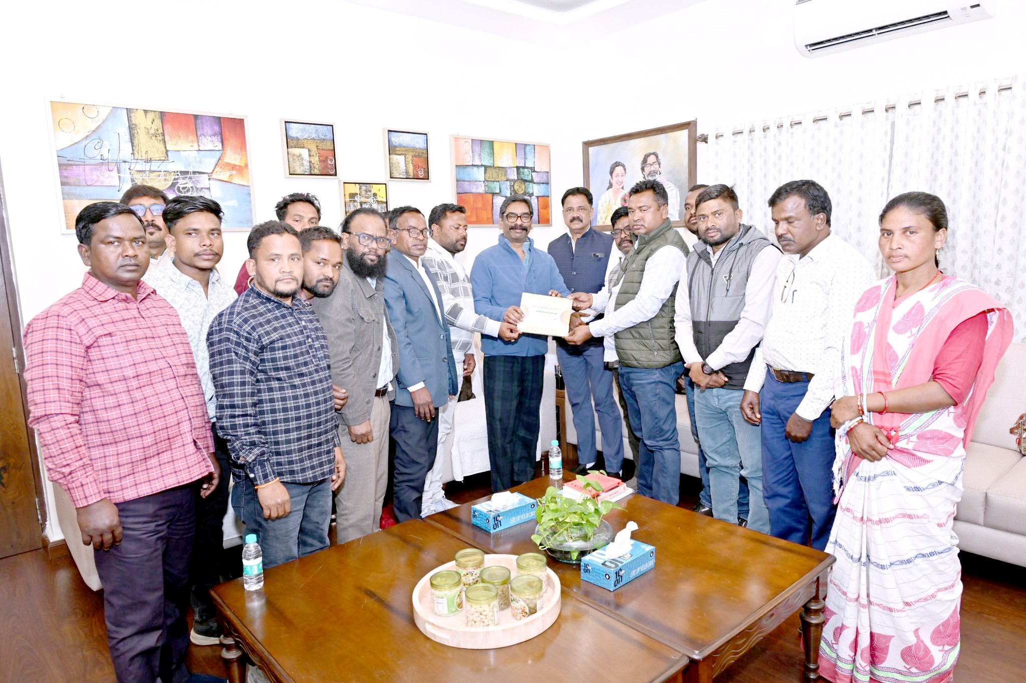 رانچی، 10 فروری:۔[جدید بھارت نیوز سروس] وزیراعلیٰ کی رہائش گاہ کانکے روڈ پر آج وزیراعلیٰ ہیمنت سورین سے مرانگ بورو جگ جاہیر باہا بونگا کمیٹی، گریڈیہہ کے ایک وفد نے ملاقات کی۔ وفد نے وزیراعلیٰ کو مرانگ بورو پارس ناتھ میں 18 سے 21 فروری 2026 تک منعقد ہونے والے مذہبی و ثقافتی اہمیت کے باہا تہوار میں بطور مہمانِ خصوصی شرکت کی دعوت دی۔ اس موقع پر وزیر سودیویہ کمار ، وزیر پھاگو بیسرا سمیت کمیٹی کے عہدیداران اور اراکین بھی موجود تھے۔