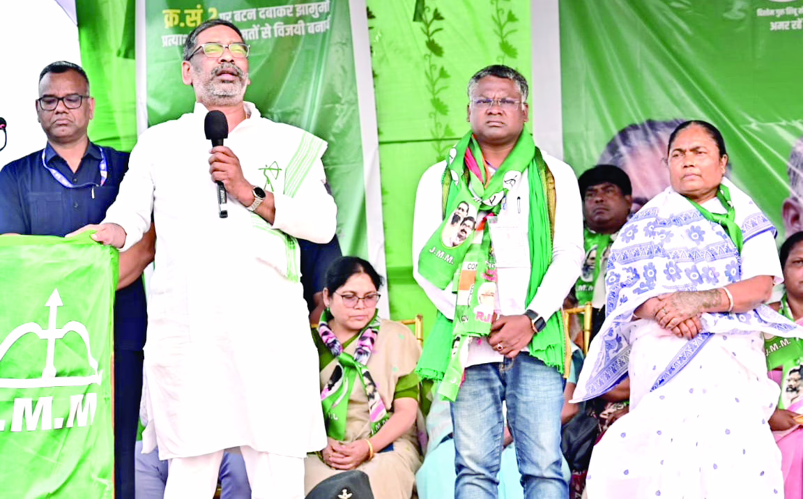 گھاٹ شلہ ، 3 نومبر:۔ گھاٹ شلہ ضمنی انتخاب کے لیے مختلف سیاسی جماعتوں کی انتخابی مہم زور و شور سے جاری ہے۔ اس تناظر میں وزیرِ اعلیٰ ہیمنت سورین نے گھاٹ شلہ سب ڈویژن کے موسابنی بلاک کے تحت کویلیسوتا گاؤں کے مارشل گراؤنڈ میں جھارکھنڈ مکتی مورچہ (جے ایم ایم) کے امیدوار کی حمایت میں ایک انتخابی ریلی سے خطاب کیا۔