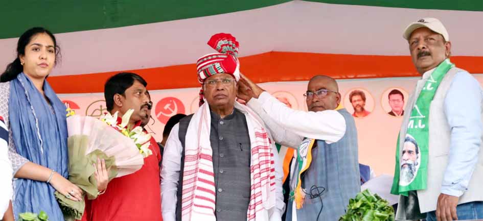 رانچی، 5 نومبر:۔ کانگریس کے قومی صدر ملکارجن کھرگے نے مانڈو میں انتخابی جلسہ سے خطاب کرتے ہوئے وزیر اعلیٰ ہیمنت سورین کی پیٹھ تھپتھپائی۔ انہوں نے کہا کہ پی ایم مودی او بی سی اور قبائلیوں کی بات کرتے ہیں، جب سے ہیمنت سورین نے 2022 میں ایس ٹی،ایس سی کے ریزرویشن میں اضافہ کرنے کی تجویز مرکز کو بھیجی تھی، وہ تجویز راج بھون میں پڑی ہے۔