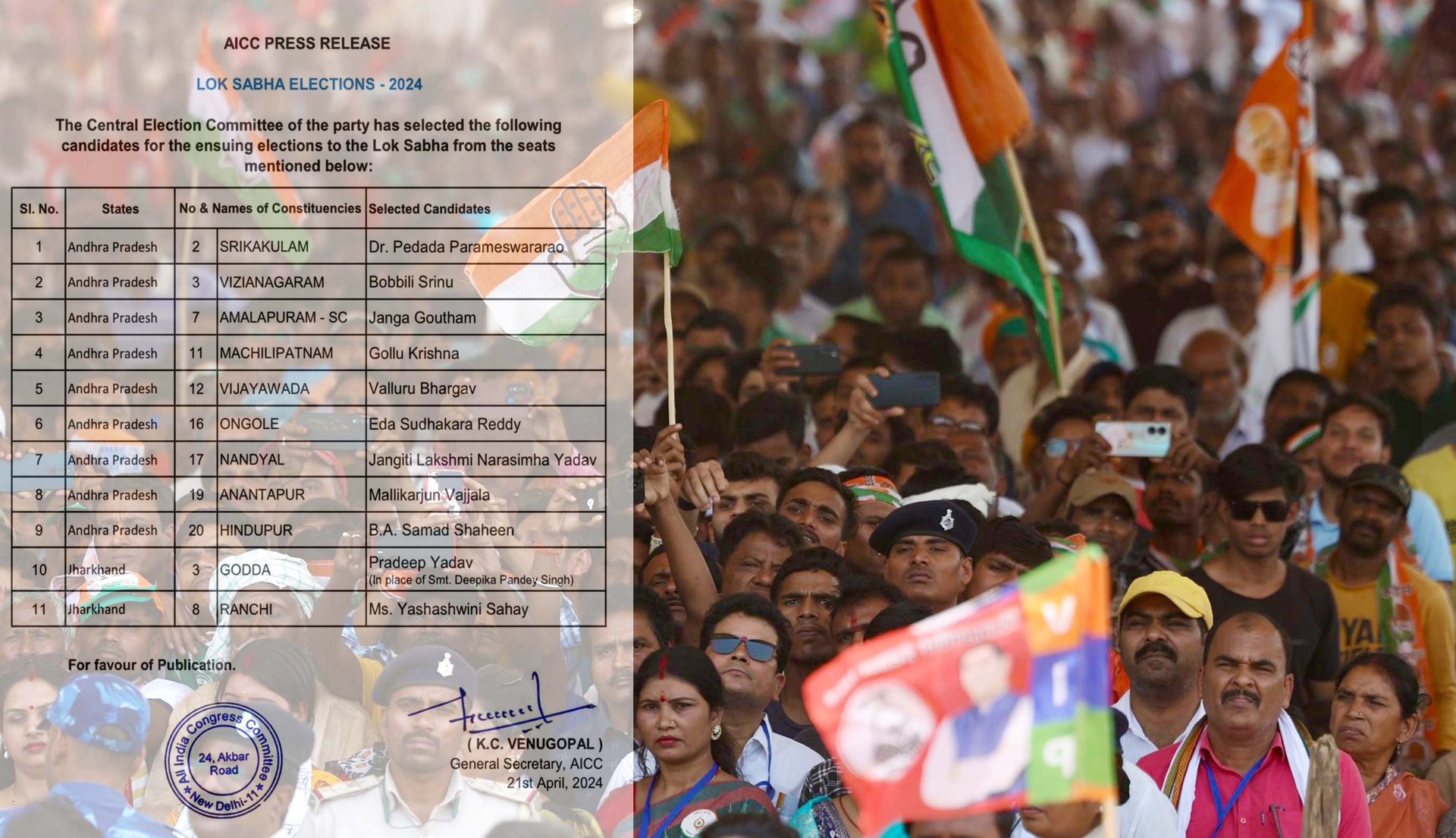 لوک سبھا انتخابات 2024: کانگریس کی نئی فہرست جاری، آندھرا کے 9 اور جھارکھنڈ کے 2 امیدواروں کا اعلان