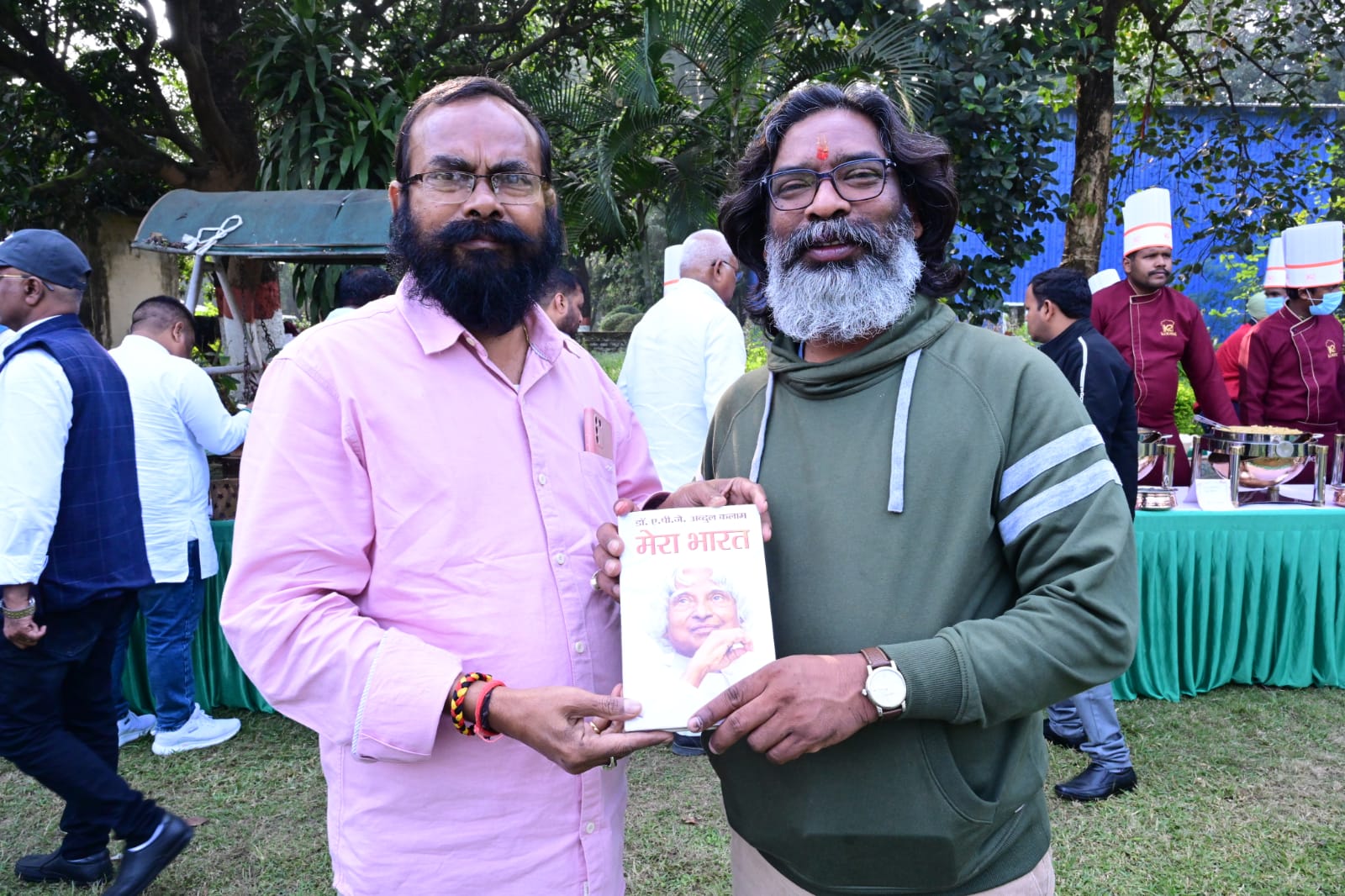 جمشید پور ۲۶؍ نومبر ( راست)جگسلائی اسمبلی حلقہ سے دوبارہ انتخاب میں کامیاب ہونے کے بعد رکن اسمبلی منگل کالندی نے رانچی میں وزیر اعلیٰ ہیمنت سورین جی سے ملاقات کی اور جے ایم ایم کی تاریخی جیت کے لئے انہیں مبارک باد اور نیک خواہشات کے ساتھ بھارت کے میزائل مین اور سابق صدر جمہوریہ ڈاکٹر اے پی جے عبد الکلام کی کتاب پیش کی ۔ اس موقع پر منگل کالندی نے کہا کہ جنتا نے ایک بار دوبارہ جھارکھنڈ کی خدمت کا موقع ہیمنت سورین جی کو سپرد کیا ہے جس کے لئے وہ عوام کاشکریہ ادا کرتے ہیں ۔