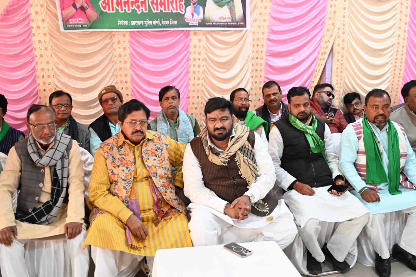 دیوگھر،16؍جنوری:آج دیوگھر اسمبلی حلقہ کے تحت بیجناتھ وہار ہوٹل کے آڈیٹوریم میں جھارکھنڈ مکتی مورچہ کمیٹی کےذریعہ استقبالیہ تقریب میں اقلیتی فلاح و بہبود نیز آبی وسائل کے وزیر حفیظ الحسن انصاری شامل ہوئے ۔ آئندہ 2 فروری کو دمکا میں منعقد یوم تاسیس میں دیوگھر ضلع سے کارکنان کو زیادہ سے زیادہ شراکت داری کولیکر چرچہ ہوئی۔ موقع پر سارٹھ کے رکن اسمبلی ادے شنکر سنگھ ، دیوگھر ضلع صدر سنجے شرما، ضلع کے تمام عہدیداران اور کارکنان موجود تھے۔