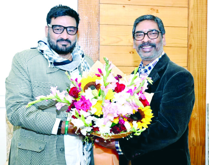 رانچی،3؍جنوری: کانکے روڈ پر واقع وزیر اعلیٰ کی رہائش گاہ کے دفتر میں آج وزیر چمرا لنڈا اور وزیر حفیظ الحسن نے وزیر اعلیٰ ہیمنت سورین سے ملاقات کی۔ اس موقع پر انہوں نے وزیر اعلیٰ کو نئے سال 2026 کی دلی مبارکباد اور نیک خواہشات پیش کیں۔ وزیر اعلیٰ نے بھی سب کو نئے سال کی مبارکباد دی اور ریاست کے عوام کی خوشحالی، ترقی اور فلاح و بہبود کی دعا کی۔