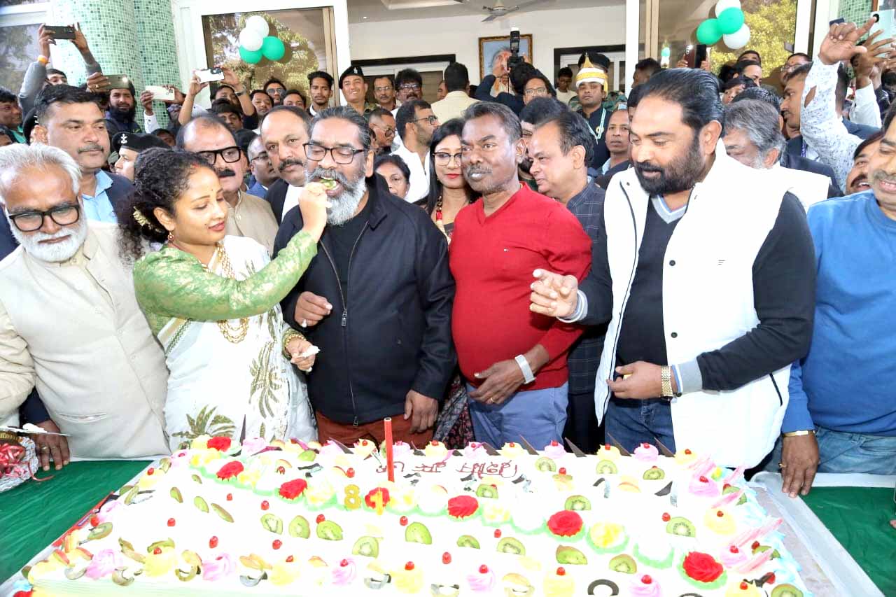 شیبو سورین کی 81 ویں سالگرہ پر ہیمنت سورین نے 81 پونڈ کا کیک کاٹا