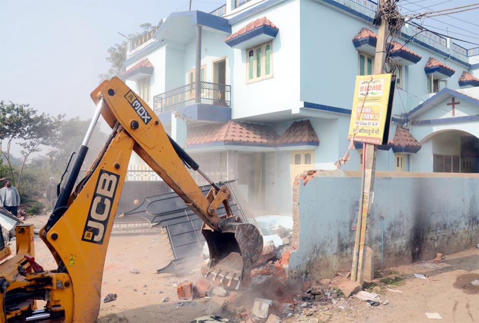 رانچی، 16 دسمبر:۔ ہائی کورٹ کے احکامات کے بعد ریمس (راجندر انسٹی ٹیوٹ آف میڈیکل سائنسز) کی زمین پر مبینہ طور پر غیر قانونی طور پر تعمیر کیے گئے درجنوں فلیٹس اور مکانات کو منہدم کرنے کی کارروائی شروع کر دی گئی ہے۔ منگل کے روز اس مقصد کے لیے دو جے سی بی مشینیں منگوائی گئیں اور سیکڑوں پولیس اہلکاروں کو تعینات کیا گیا۔ انتظامیہ کی جانب سے پہلے ہی نشاندہی شدہ مکانات کے مالکان کو گھروں سے اپنا سامان نکالنے کا اعلان کر دیا گیا تھا۔