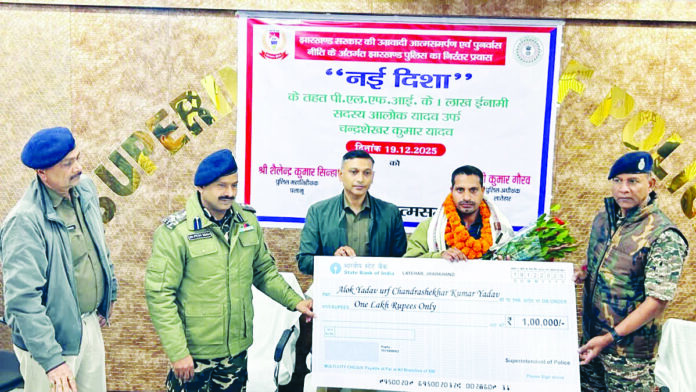 لاتیہار کے ایس پی کمار گورو نے بتایا کہ پی ایل ایف آئی نکسلائٹ آلوک یادو نے جمعہ کو پولیس کے سامنے خودسپردگی کی۔ اس کے اس عمل پر ایک لاکھ روپے انعام کا اعلان کیا گیا۔ انہوں نے کہا کہ پولیس نکسلیوں کے خلاف مسلسل کارروائی کر رہی ہے۔ مارچ 2026 تک پورے ضلع کو نکسلائیٹ فری کر دیا جائے گا۔ حکومت کے نئی دِشا پروگرام کا فائدہ اٹھاتے ہوئے نکسلیوں کے پاس ہتھیار ڈالنے کا آخری موقع ہے۔ انہوں نے کہا کہ پولیس کی کارروائی جاری رہے گی۔