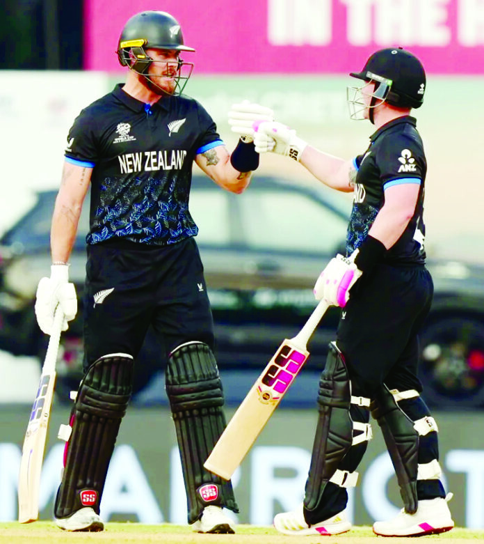 چنئی،10؍فروری(ایجنسی):نیوزی لینڈ نے ٹی-20 ورلڈ کپ میں مسلسل دوسری جیت حاصل کر لی ہے۔ کیوی ٹیم نے منگل کے دوسرے میچ میں متحدہ عرب امارات (UAE) کو 10 وکٹوں سے ہرا دیا۔ چنئی کے چیپاک میدان پر نیوزی لینڈ نے 174 رنز کا ہدف 15.2 اوورز میں بغیر کسی نقصان کے حاصل کر لیا۔اوپنر ٹم سیفرٹ (89 رنز) اور فن ایلن (84 رنز) نے نصف سنچریاں بنائیں۔ دونوں نے 175 رنز کی اوپننگ پارٹنرشپ کی۔ یہ ٹی-20 ورلڈ کپ کی تاریخ میں نیوزی لینڈ کے اوپنرز کی سب سے بڑی شراکت داری ہے۔یو اے ای نے ٹاس جیت کر بیٹنگ کرتے ہوئے 20 اوورز میں 6 وکٹوں پر 173 رنز بنائے۔ کپتان محمد وسیم نے 66 رنز بنائے جبکہ علیشان شرافو نے 55 رنز کا تعاون دیا۔ نیوزی لینڈ کے میٹ ہنری نے 2 وکٹیں حاصل کیں۔ جیکب ڈفی، لوکی فرگوسن، مچل سینٹنر اور گلین فلپس کو ایک ایک وکٹ ملی۔