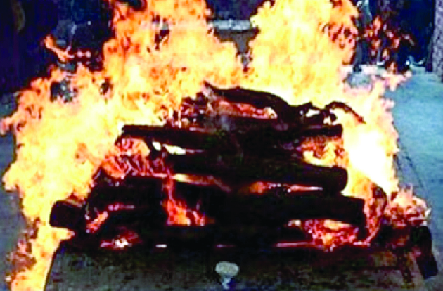 لواحقین نے پتلا جلایا، ریاستی حکومت سے مدد کا مطالبہ