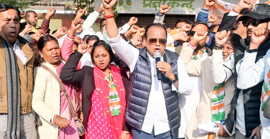 جامتاڑا،22؍دسمبر: کانگریس پارٹی نے منریگا اسکیم کے ساتھ چھیڑ چھاڑ کرنے اور اس کا نام تبدیل کرنے کی بی جے پی کی سازش کے خلاف آج جامتاڑا میں ایک زبردست، پرتشدد اور تاریخی احتجاج کیا۔اس تحریک میں کانگریس کارکنوں، خواتین اور نوجوانوں کی بڑی تعداد میں شرکت دیکھنے میں آئی۔ مرکزی حکومت کی عوام دشمن پالیسیوں کے خلاف پورے علاقے میں گونجنے والے نعروں نے واضح پیغام دیا کہ غریبوں کے حقوق پر کوئی سمجھوتہ نہیں کیا جائے گا۔