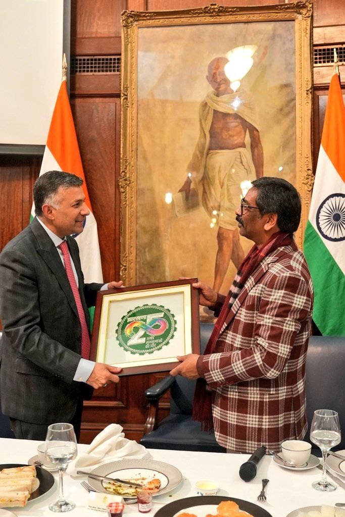 رانچی، 23 جنوری:۔ وزیر اعلیٰ ہیمنت سورین نے یونائیٹڈ کنگڈم میں بھارت کے ہائی کمیشن میں منعقدہ ایک سرکاری استقبال تقریب میں حصہ لیا۔ یہ پروگرام بھارتی ہائی کمشنر وکرم دویرائیسوامی کی جانب سے منعقد کیا گیا تھا۔ اس موقع پر وزیر اعلیٰ نے مختلف ممالک کے نمائندگان، پالیسی ساز اور ماہرین سے گفتگو کی۔ ہیمنت سورین نے جھارکھنڈ کی اقتصادی ترقی، صنعتی مواقع، قدرتی وسائل اور انسانی صلاحیتوں کے بارے میں تفصیل سے آگاہ کیا۔ انہوں نے کہا کہ ریاست کی معدنی دولت، نوجوانوں کی قوت اور ثقافتی وراثت جھارکھنڈ کو ملک کی ترقی میں نمایاں کردار ادا کرنے کا موقع فراہم کرتی ہیں۔ ملاقات میں یو کے کے ساتھ وراثت کے تحفظ اور ثقافتی شراکت کے مواقع، اعلیٰ تعلیم، مہارت کی تربیت، کھیلوں اور اہم و نایاب معدنیات کے شعبوں میں تعاون پر بھی مثبت تبادلہ خیال کیا گیا۔ وزیر اعلیٰ نے کہا کہ بین الاقوامی تعاون سے جھارکھنڈ کے نوجوانوں کو عالمی سطح پر نئے مواقع میسر آئیں گے۔