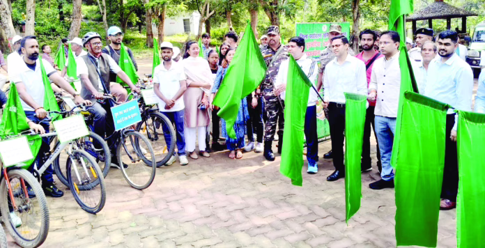 ہزاریباغ،6؍اکتوبر: ماحولیات کو بہتر رکھنے اور جنگلاتی تحفظ کی مہم سے لوگوں کو جوڑنے کیلئے ’پریاورن بچاؤ سائیکل یاترا‘ نکالی گئی۔ 25 کیلومیٹر کی یہ یاترا، کنہری پہاڑی کی تلہٹی سے دودھ مٹیا جنگل تک پہنچی۔ دودھ مٹیا میں میں تباہ شدہ جنگل کو بچانے کی مہم کی یاد میں ہر سال یہاں ماحولیاتی میلہ لگتا ہے۔