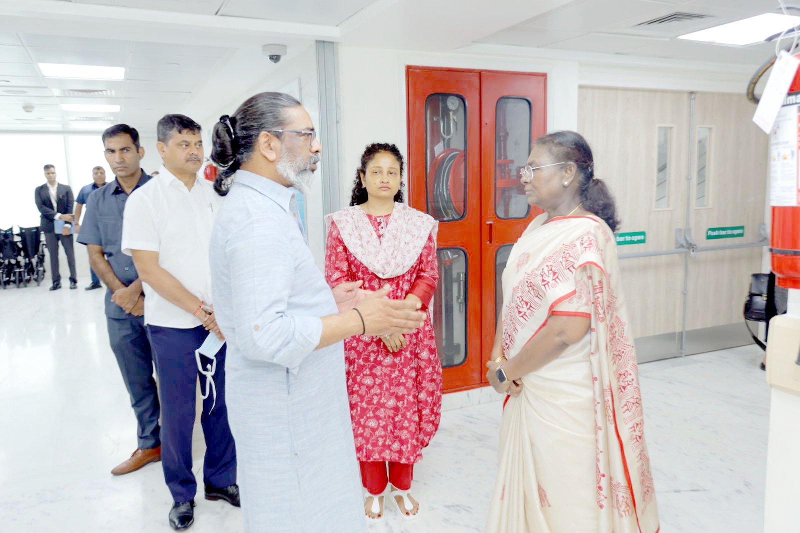 رانچی؍ ئی دہلی، 26 جون:۔ صدر دروپدی مرمو جمعرات 26 جون 2025 کو نئی دہلی کے سر گنگا رام ہسپتال پہنچیں۔ انہوں نے جھارکھنڈ کے سابق وزیر اعلیٰ ڈشوم گرو شیبو سورین کی صحت کے بارے میں دریافت کیا۔صدر دروپدی مرمو نے جمعرات کو نئی دہلی میں سر گنگا رام کینسر سینٹر کا افتتاح کیا۔ اس کا مقصد کینسر کے مریضوں کو جامع دیکھ بھال فراہم کرنا ہے۔ اس دوران صدرجمہوریہ نے جدید ترین سہولیات کا دورہ کیا اور مریضوں سے بات چیت کی۔ افتتاح کے دوران وزیر مملکت برائے صحت انوپریہ پٹیل، دہلی کے لیفٹیننٹ گورنر وی کے سکسینہ اور ایم پی بنسوری سوراج بھی موجود تھے۔