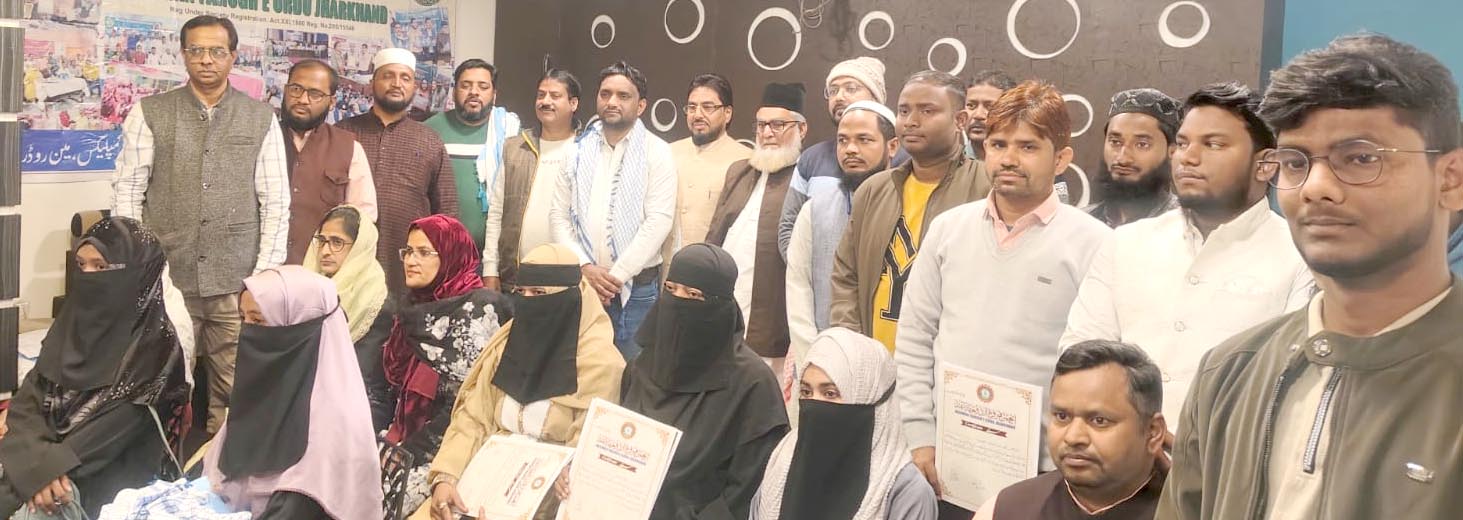 رانچی ،07؍دسمبر: انجمن فروغ اردو جھارکھنڈ کی ایک نشست آج ہوٹل شاہ ریزیڈنسی کربلا چوک، رانچی میں ہوئی، جس میں انجمن فروغ اردو جھارکھنڈ کے پانچ سال مکمل ہونے پر پنج سالہ رپورٹ پیش کی گئی ۔ ساتھ ہی آئندہ کے ذمے داران کا انتخاب عمل میں آیا۔ پروگرام میں انجمن فروغ اردو جھارکھنڈ کے مختلف ضلعی سطح کے ممبران کے علاوہ مختلف علاقوں سے فعال اور متحرک ممبران شامل ہوئے ۔ اس پروگرام کی صدارت جمعیۃ علماء جھارکھنڈ کے سکریٹری شاہ عمیر نے فرمائی ۔اس پروگرام کا آغاز رام گڑھ سے آئے ہوئے قاری امیر حمزہ نے تلاوت قرآن پاک سے کیا۔ اس کے بعد مکرم حیات نے نعت پاک پیش کی اور انجمن فروغ اردو کا ترانہ پڑھا ۔ سابق صدر کی حیثیت سے محمد اقبال نے انجمن فروغ اردو جھارکھنڈ کی پنج سالہ رپورٹ پیش کی،جس میں انہوں نے بتا یا کہ انجمن فروغ اردو نے اس دورانیے میں کئی سمینار ،مشاعرے ،ادبی نشستوں کے علاوہ تقریباً 12ہزار میٹرک و انٹرکے طلبا کی حوصلہ افزائی کے ذریعہ اردو کو فروغ دینے کاکام کیا۔