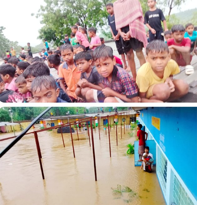 مشرقی سنگھ بھوم، 29 جون (ہ س)۔ مشرقی سنگھ بھوم ضلع کے پوٹکا بلاک علاقے میں سنیچر کی رات موسلا دھار بارش نے تباہی مچا دی۔ موسلادھار بارش کے باعث پوٹکا کے کئی گاوں میں سیلاب جیسی صورتحال پیدا ہوگئی ہے۔ اچانک گڑرا ندی کی ا?بی سطح خطرے کے نشان سے اوپر ہونے کی وجہ سے ندی کے کنارے واقع پندرشولی گاو?ں کے لو کش انگلش اسکول کا ہاسٹل بھی اس کی زد میں ا?گیا۔ رات کے اندھیرے میں جب ہاسٹل میں 162 بچے سو رہے تھے تو ہاسٹل کے اندر ا?ہستہ ا?ہستہ پانی بھرنے لگا۔ پانی کی سطح تیزی سے بلند ہونے پر ہاسٹل کے تمام بچے اپنی جان بچانے کے لیے چھت پر چڑھ گئے اور پانچ گھنٹے تک دہشت میں رہے۔ اطلاع ملتے ہی پانڈرشولی اور ا?س پاس کے گاوں کے لوگ دیر رات موقع پر پہنچے۔ گاوں والوں نے فوراً انتظامیہ کو اطلاع دی۔ اتوار کی صبح بی ڈی او ارون کمار منڈا، سی او نکیتا بالا، کووالی تھانہ انچارج دھننجے پاسوان اور دیگر انتظامی اہلکار راحت اور بچاو کے کاموں میں لگ گئے۔گاوں والوں اور انتظامیہ کی مدد سے تمام بچوں کو رسیوں کے سہارے بحفاظت نکال کر اونچی جگہ پر پہنچایا گیا، اس طرح ایک بڑا حادثہ ٹل گیا۔ رات بھر جاری رہنے والے اس ریسکیو ا?پریشن کے دوران بچوں کے اہل خانہ اور گاوں والوں میں خوف و ہراس کا ماحول رہا۔ادھر گڈرا ندی میں پانی کی سطح میں حد سے زیادہ اضافہ ہونے سے کئی اہم پلوں پر پانی بہنے لگا جس کی وجہ سے علاقے میں ٹریفک مکمل طور پر ٹھپ ہو کر رہ گئی ہے۔ بارش کا پانی داخل ہونے سے ندی ڈھیپا گاوں میں بھی سیلاب کی صورتحال پیدا ہوگئی ہے۔ گاوں کے کئی گھر سیلاب میں بہہ گئے، کئی بکریاں بہہ گئیں اور ایک کار بھی پانی کے تیز بہاو میں بہہ گئی۔ اسی طرح پرائمری اسکول کھڑبندھ میں بھی ندی کا پانی اوور فلو ہو کرا سکول کے احاطے میں داخل ہو گیا۔ گاوں والے اس قدرتی ا?فت سے خوفزدہ ہیں۔ انتظامیہ کا کہنا ہے کہ امدادی کام مسلسل جاری ہے اور پانی کی سطح معمول پر ا?نے تک تمام متاثرہ افراد کو محفوظ مقامات پر رکھا جائے گا۔