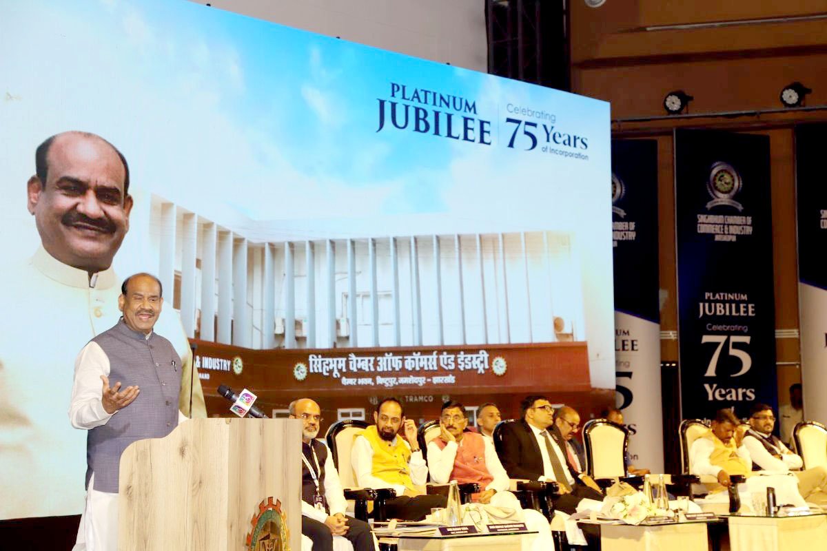 رانچی سے فضائی راستے سے دوپہر سوا بارہ بجے جمشیدپور کے سوناری ایئرپورٹ پہونچے، اسکے بعد اوم برلا نے لوئولا اسکول کے آڈیٹوریم میں سنگھ بھوم چیمبر آف کامرس اینڈ انڈسٹری کے پلاٹینم جوبلی تقریب میں شرکت کی۔ اس موقع پر انہوں نے ہندوستان کی مسلح افواج کی بہادری کی بھرپور تعریف کی اور کہا، “ہندوستان کی 140 کروڑ عوام اپنی افواج پر فخر کرتی ہے۔ ’آپریشن سندور‘ نے یہ ثابت کر دیا ہے کہ ہم نہ صرف اپنی حفاظت کرنے میں کامیاب ہیں بلکہ دہشت گردی کو جڑ سے ختم کرنے کے لیے نئی حکمت عملی کے تحت کام کریں گے۔ جو بھی ملک بھارت میں دہشت گردی پھیلانے کی کوشش کرے گا، اس کو ’آپریشن سندور‘ سے بھی کہیں زیادہ سنگین نتائج کا سامنا کرنا پڑے گا۔” اس دوران اوم برلا کا پاروینی طریقے سے روایتی طور پر خوش آمدید کیا گیا۔ دفاعی وزیر مملکت سنجے سیٹھ، سابق مرکزی وزیر اور سابق چیف منسٹر ارجن منڈا اور موجودہ ایم پی ویدوت برن مہتو نے بھی اپنے خیالات کا اظہار کیا۔