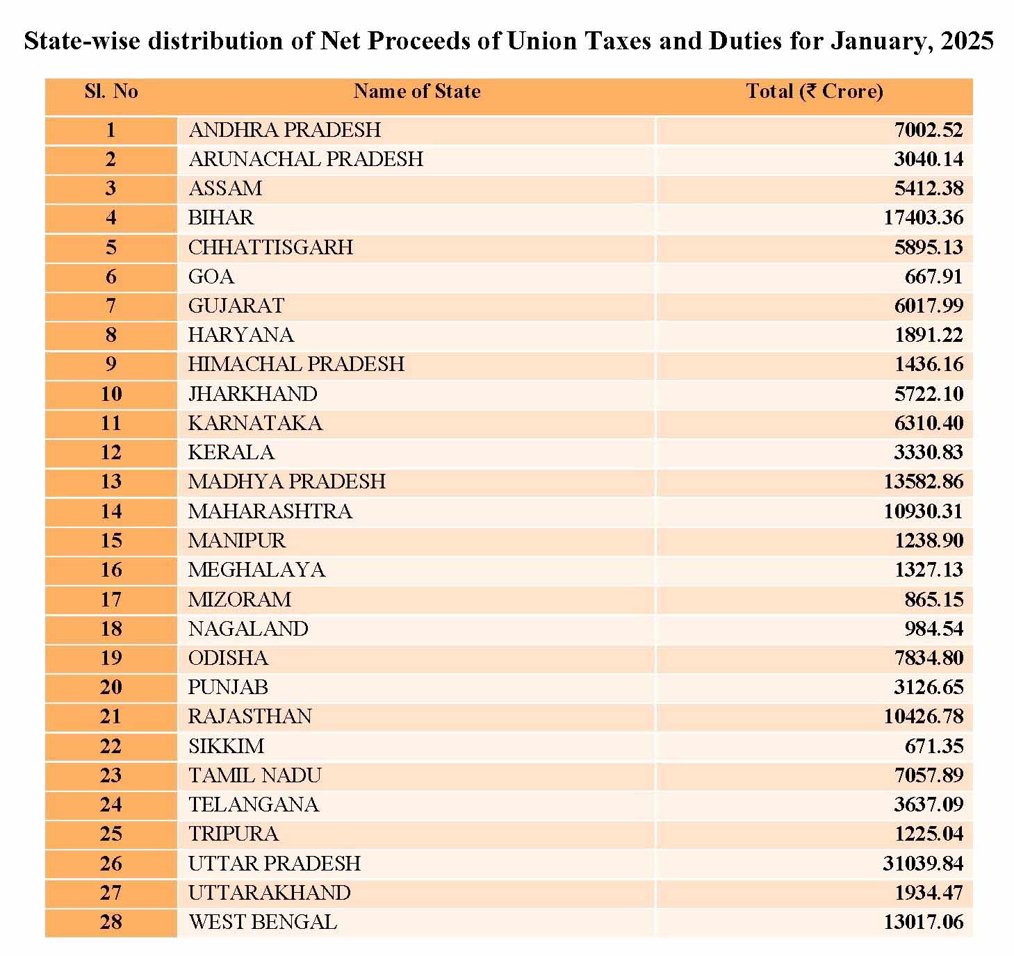 جمعہ کے روز جاری کردہ رقم 28 ریاستوں کو دی گئی ہیں۔ سب سے زیادہ تقریباً 31 ہزار کروڑ روپے اتر پردیش کے حصے میں گئے ہیں۔ موصولہ اطلاع کے مطابق مغربی بنگال کیلئے 13017.06 کروڑ روپے، آندھرا پردیش کیلئے 7002.52 کروڑ روپے، کرناٹک کیلئے 6310.40 کروڑ روپے، آسام کیلئے 5412.38 کروڑروپے، چھتیس گڑھ کیلئے 5895.13 کروڑ روپے، ہماچل پردیش کیلئے 1436.16 کروڑ روپے، کیرالہ کیلئے 3330.83 کروڑ روپے، پنجاب کیلئے 3126.65 کروڑ روپے اور تمل ناڈو کیلئے 7057.89 کروڑ روپے جاری کیے گئے ہیں۔