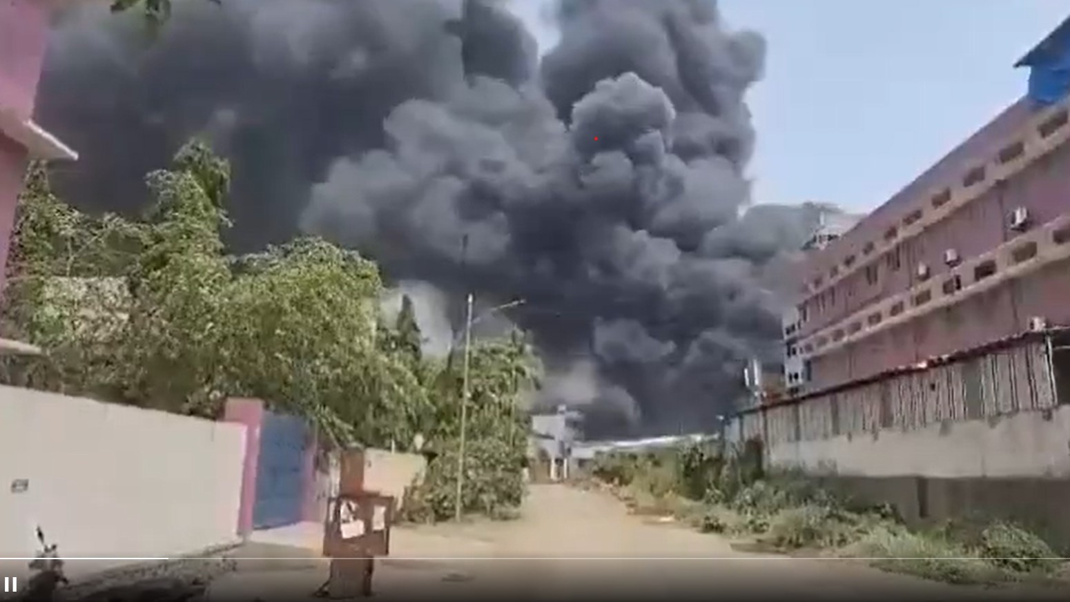 #WATCH | Maharashtra: Fire breaks out due to a boiler explosion in a factory located in the MIDC area in Dombivli. More than four fire tenders rushed to the site.